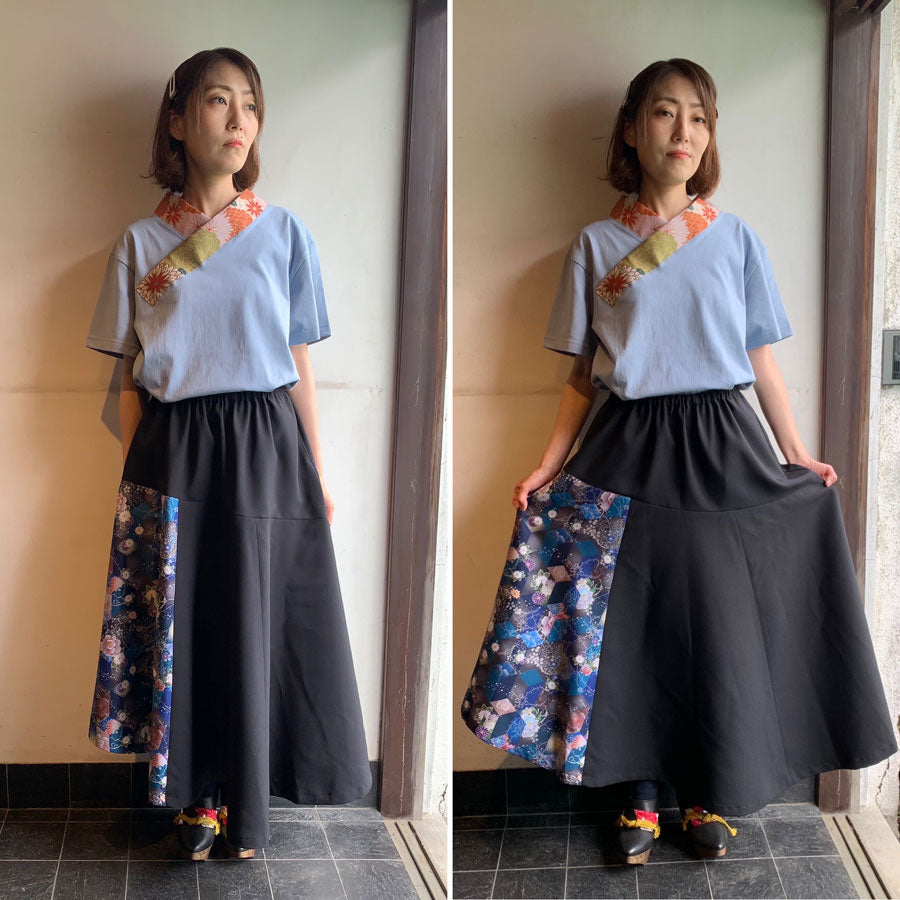 真っ直ぐではない、アシンメトリーヘムなスカート。