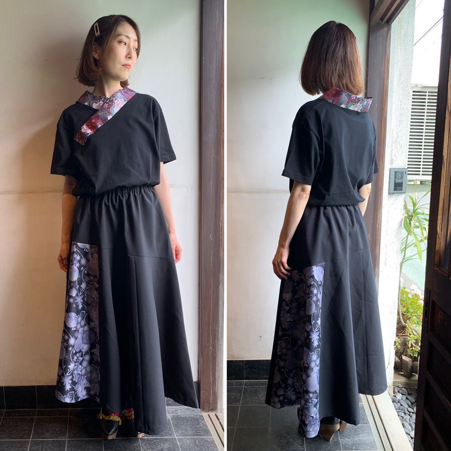 gouk 6枚切り替えフレアースカート BK-GY