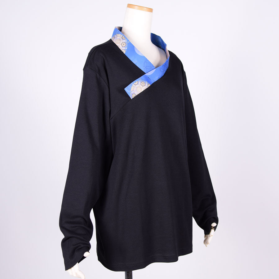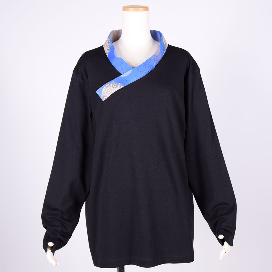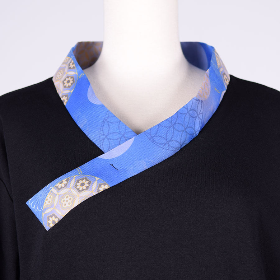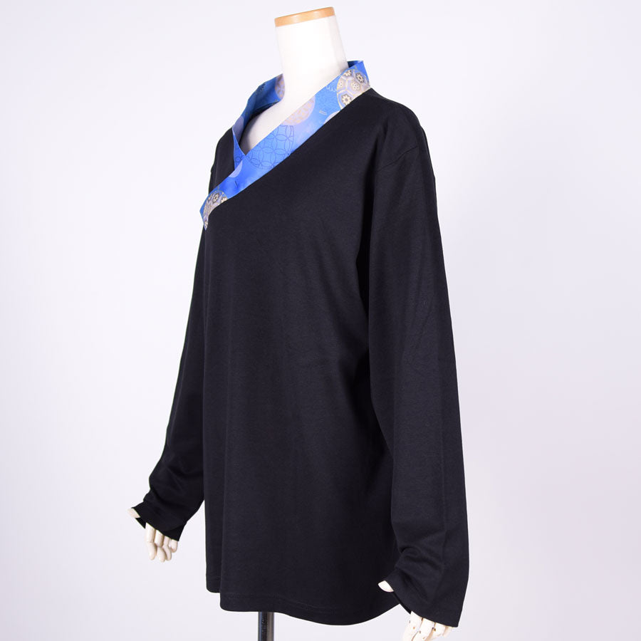 着物の襟のようにまっすぐな和柄をつけて作ったカットソーです。