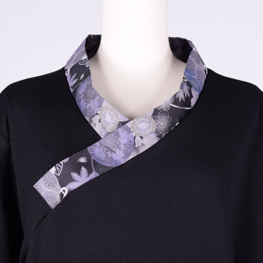 着物の襟のようにまっすぐな和柄をつけて作ったカットソーです。