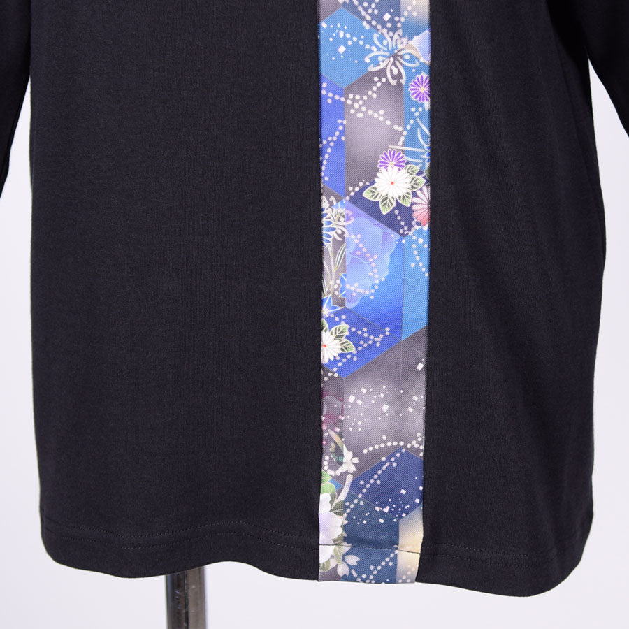 左寄りに切り替えた和柄がアクセントになり、羽織からちらりと見える感じもカッコ良いです。