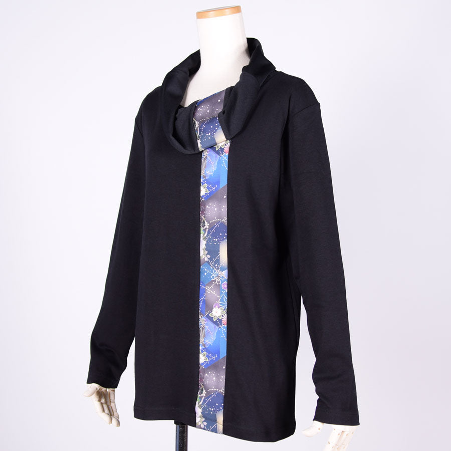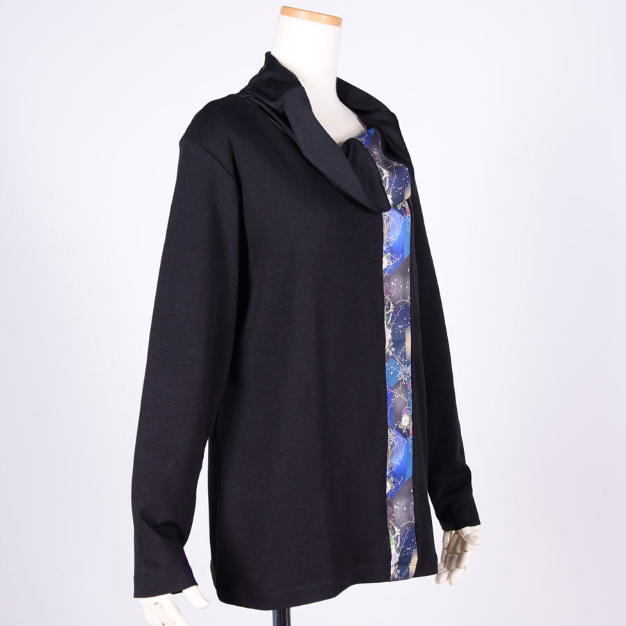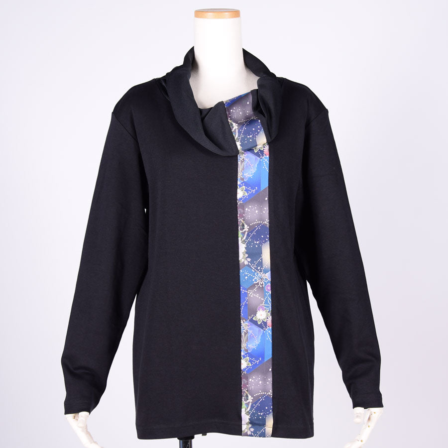 襟の折り曲げ方を変えるだけで違って見えるトップス。