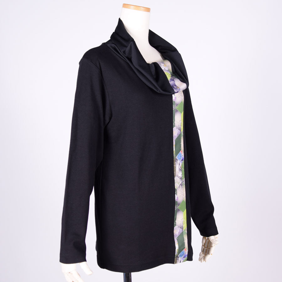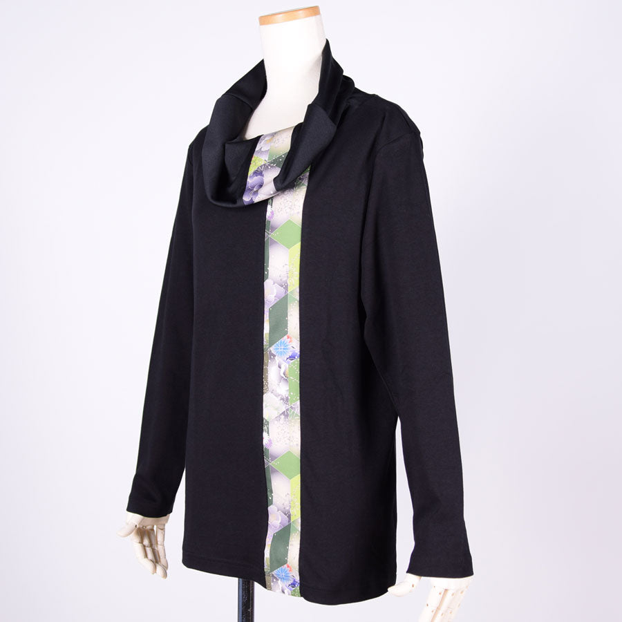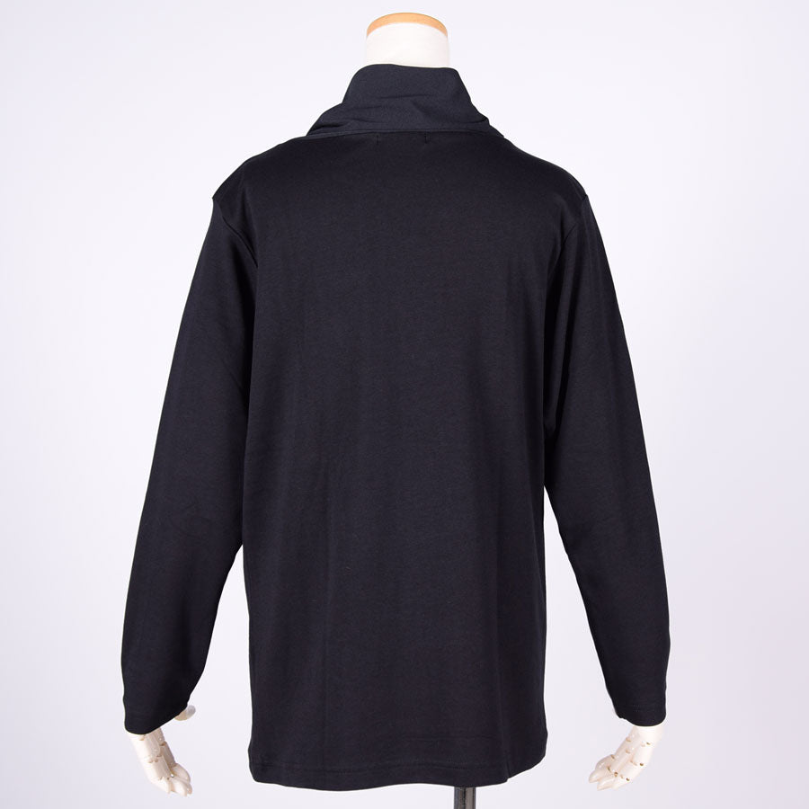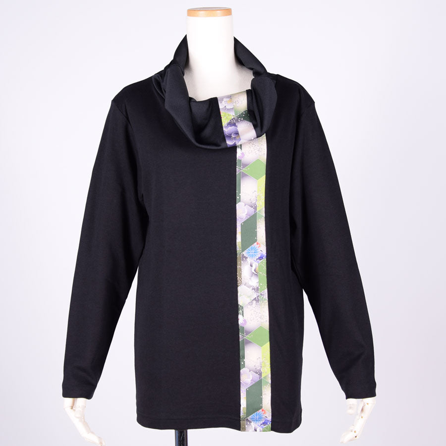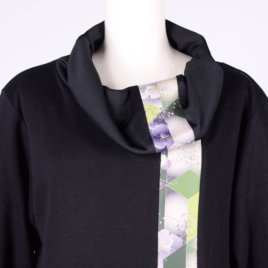 襟の折り曲げ方を変えるだけで違って見えるトップス。