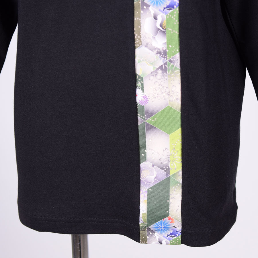 左寄りに切り替えた和柄がアクセントになり、羽織からちらりと見える感じもカッコ良いです。