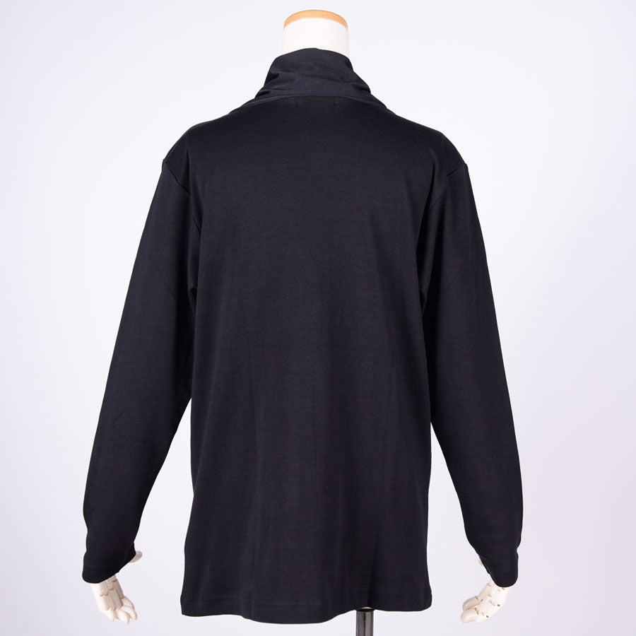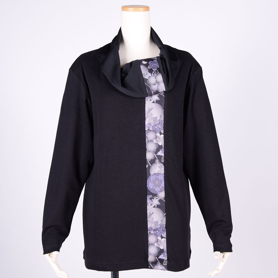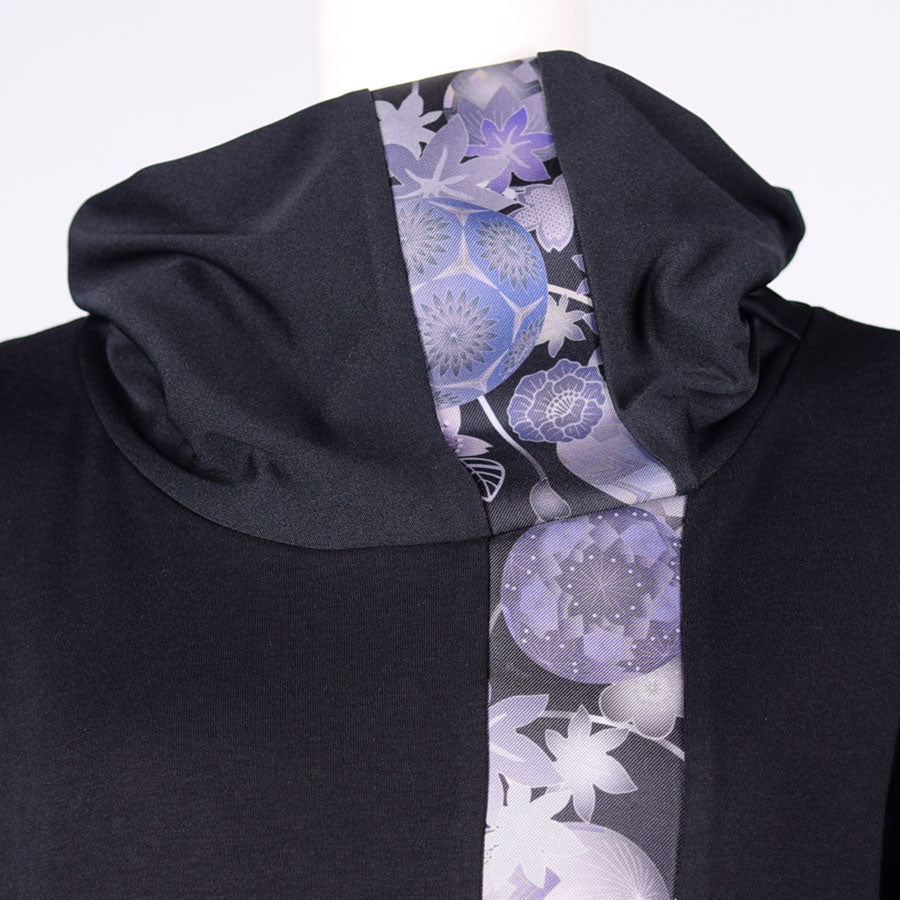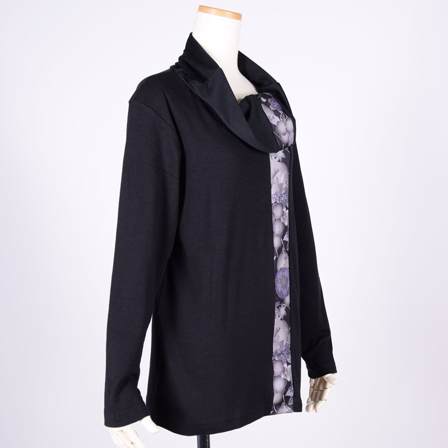 襟の折り曲げ方を変えるだけで違って見えるトップス。