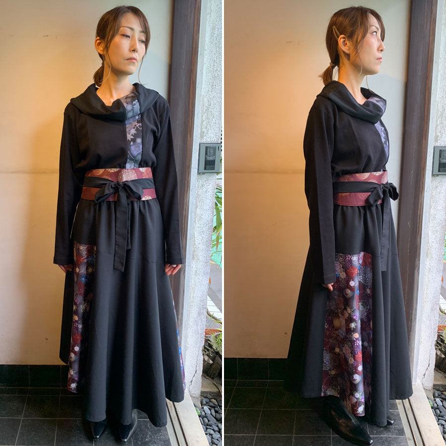 左寄りに切り替えた和柄がアクセントになり、羽織からちらりと見える感じもカッコ良いです。