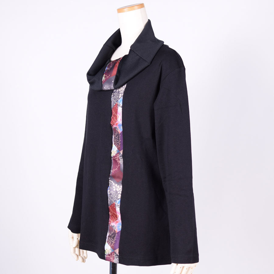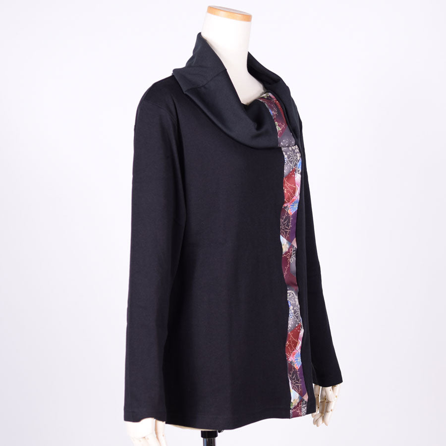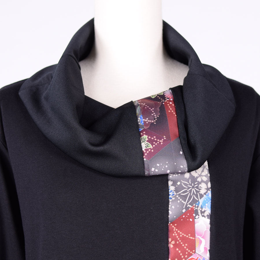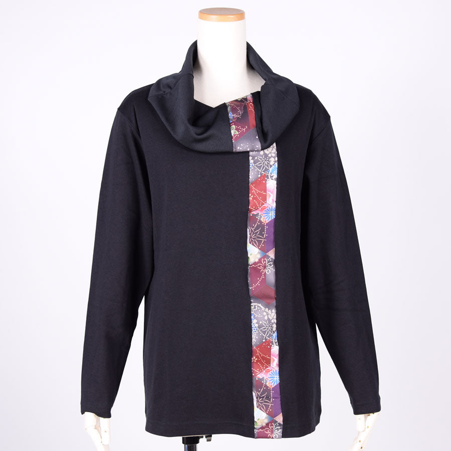 襟の折り曲げ方を変えるだけで違って見えるトップス。