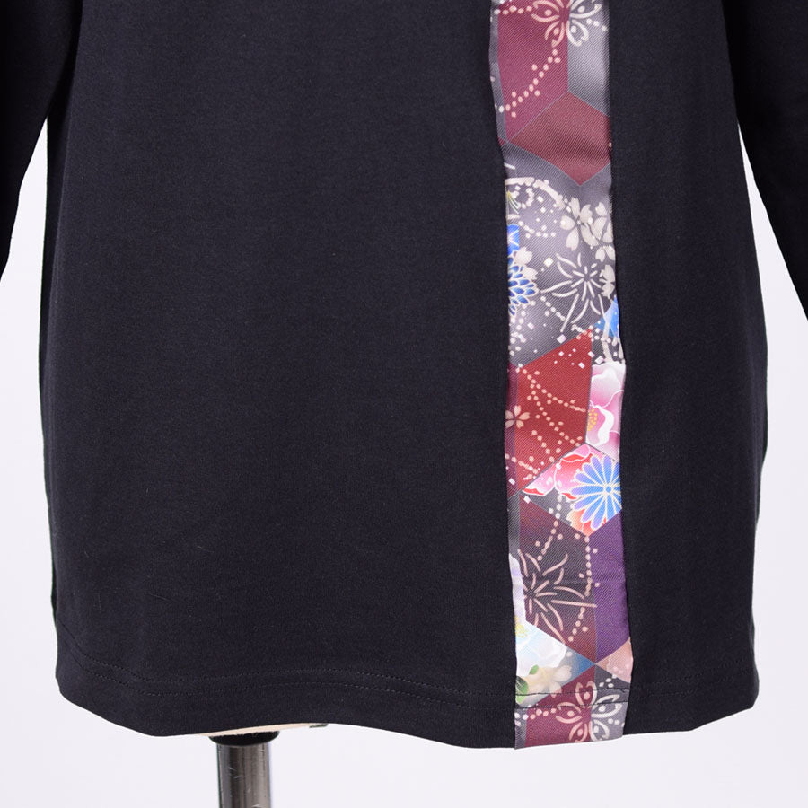 左寄りに切り替えた和柄がアクセントになり、羽織からちらりと見える感じもカッコ良いです。