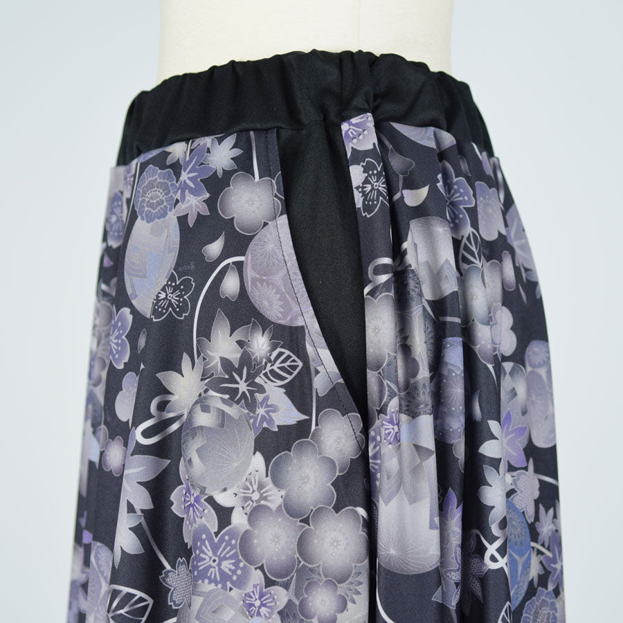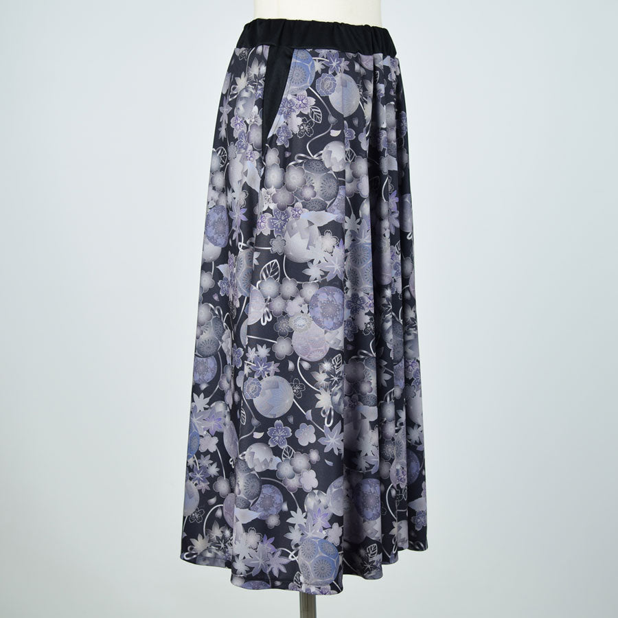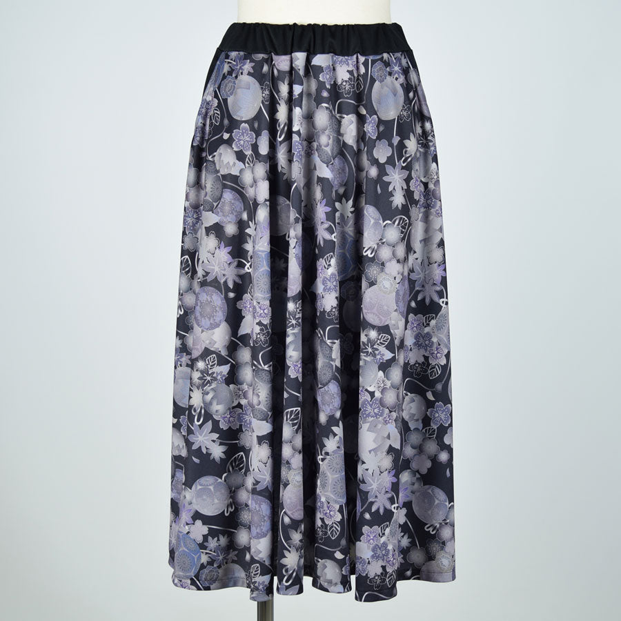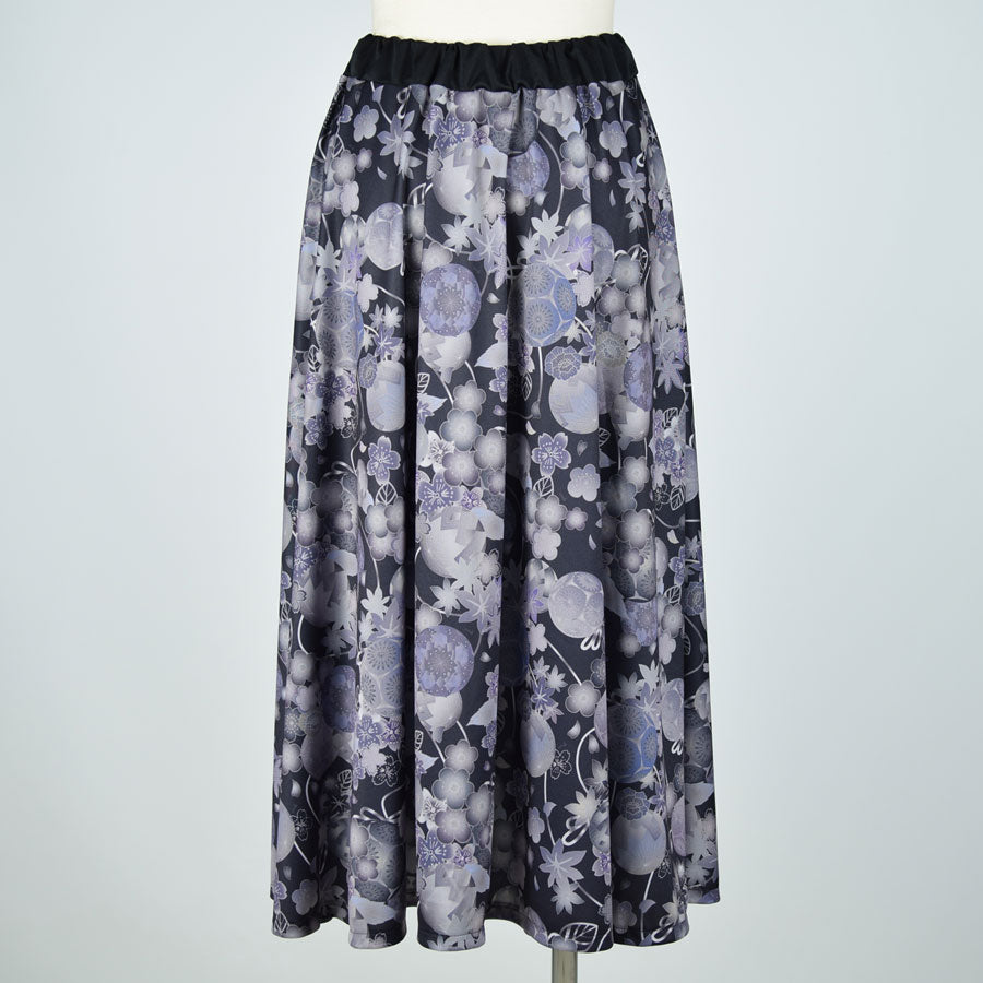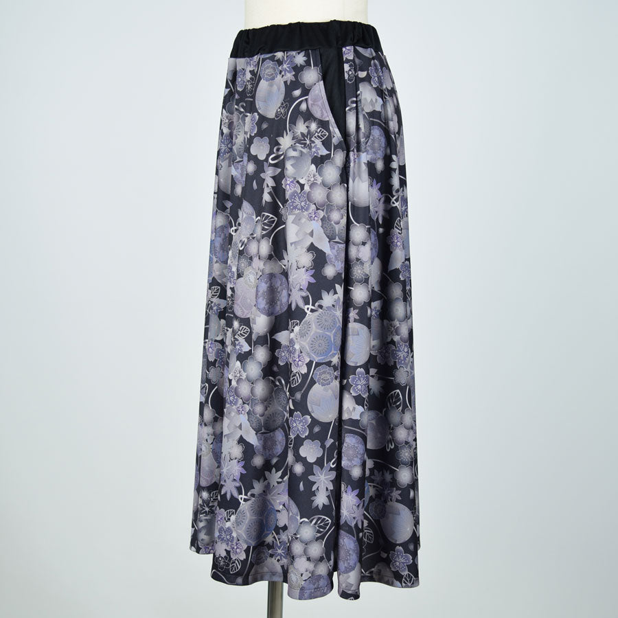 gouk 和柄のフレアースカート GY-BK