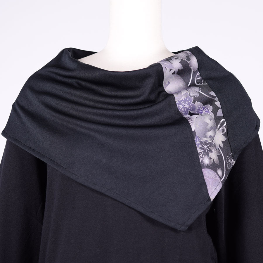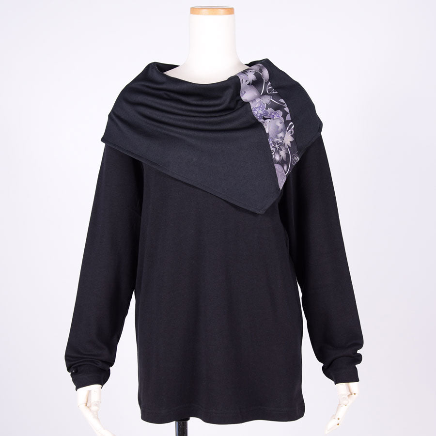 トップスの上に和柄切り替えのケープをしているようなデザインのトップス。