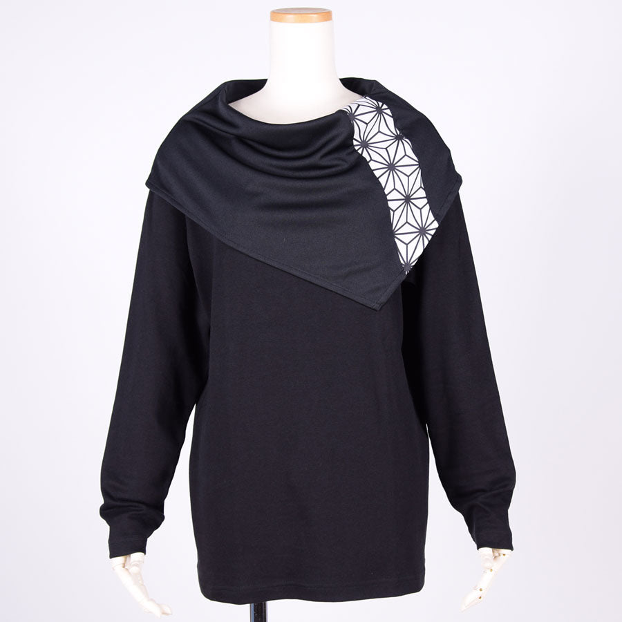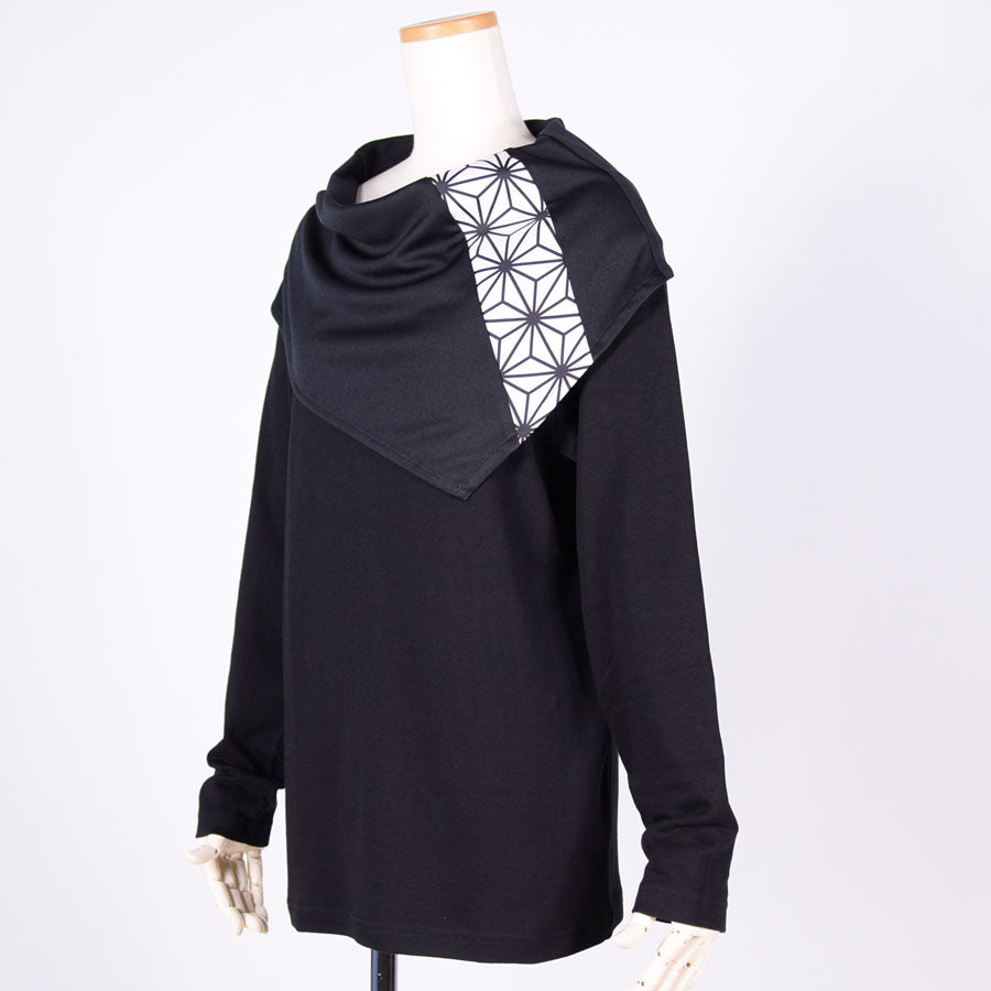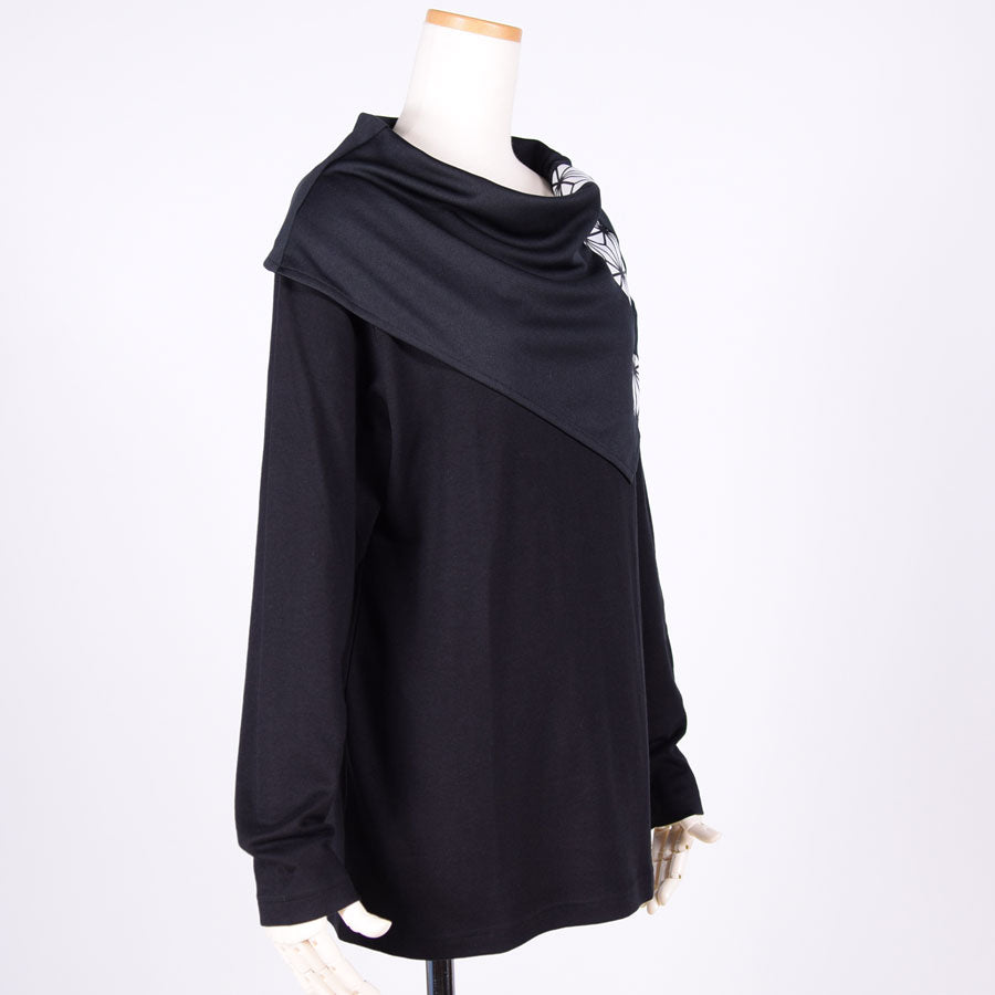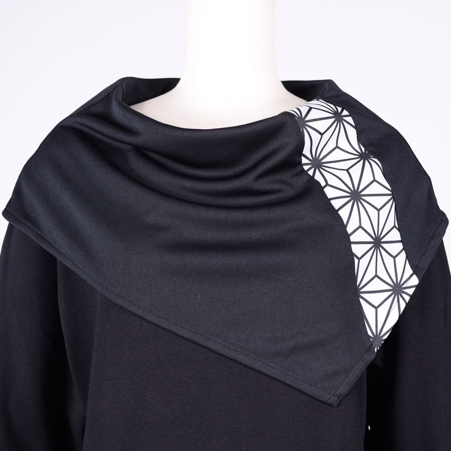 トップスの上に和柄切り替えのケープをしているようなデザインのトップス。