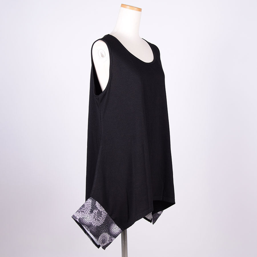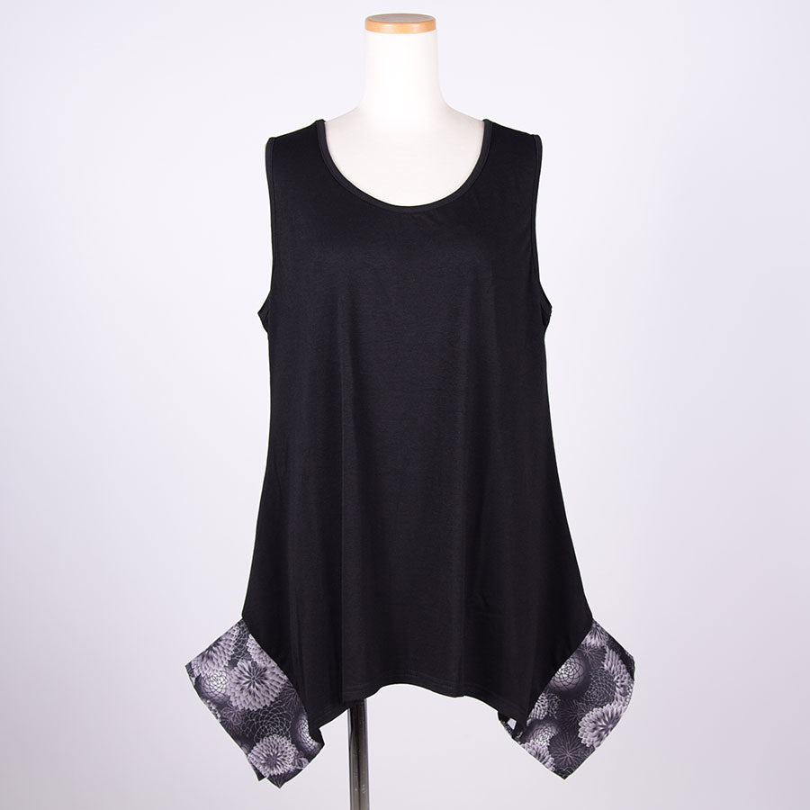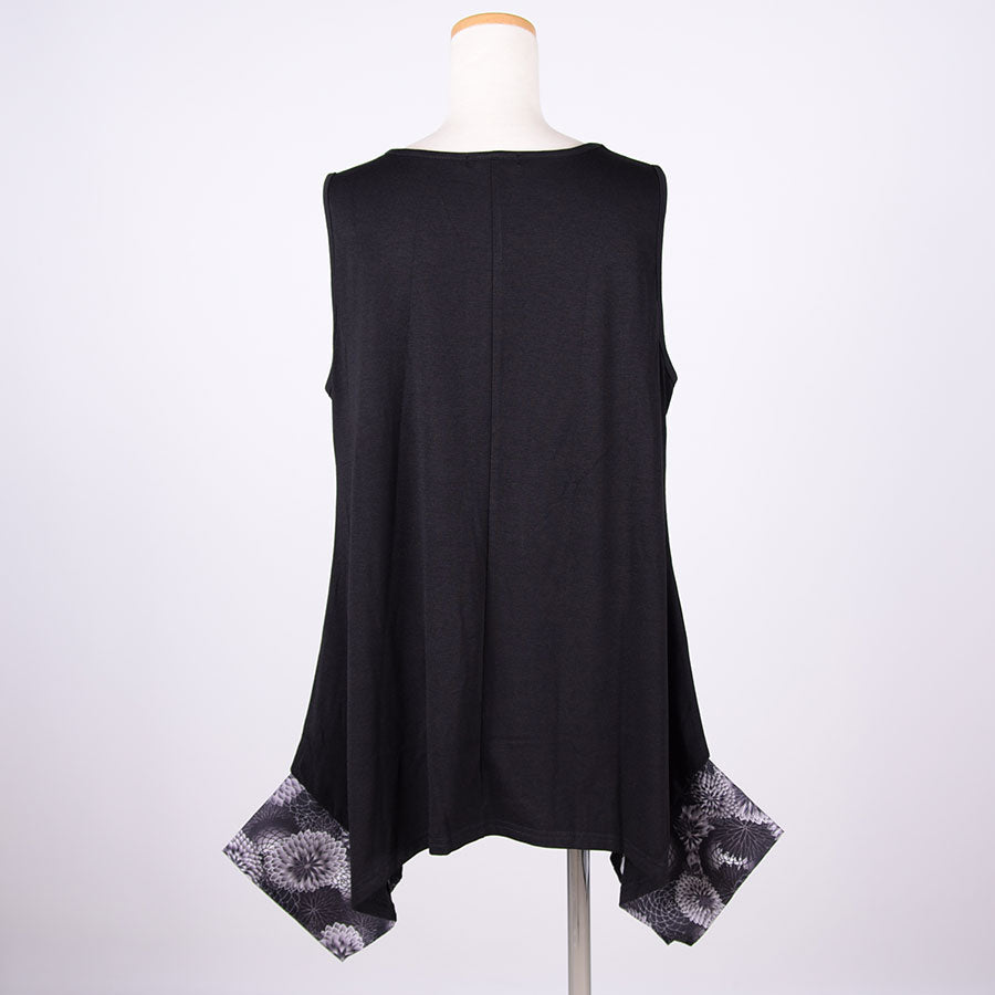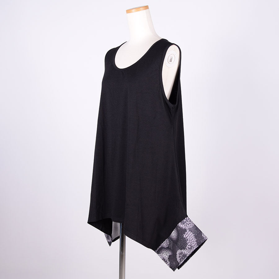 両脇が長めになっていて和柄を切り替えてあるタンクトップ。
