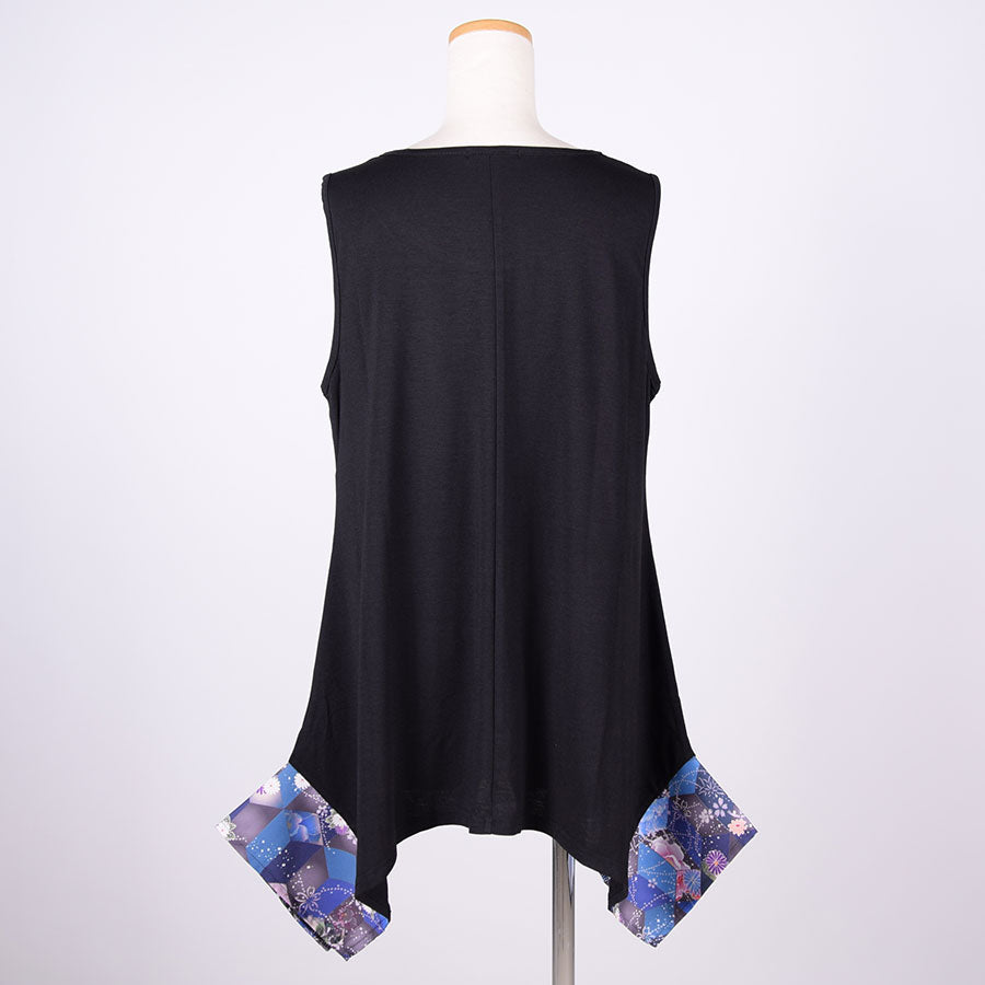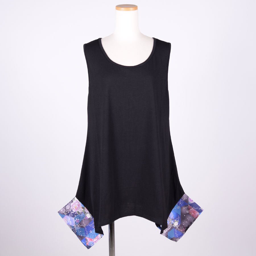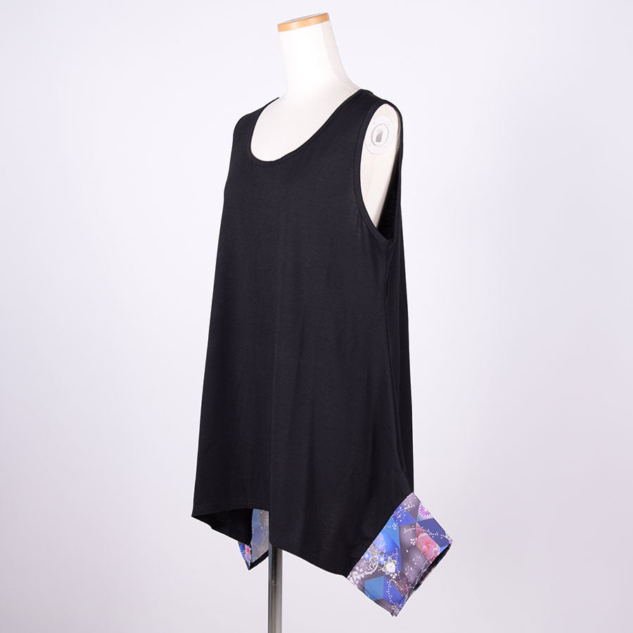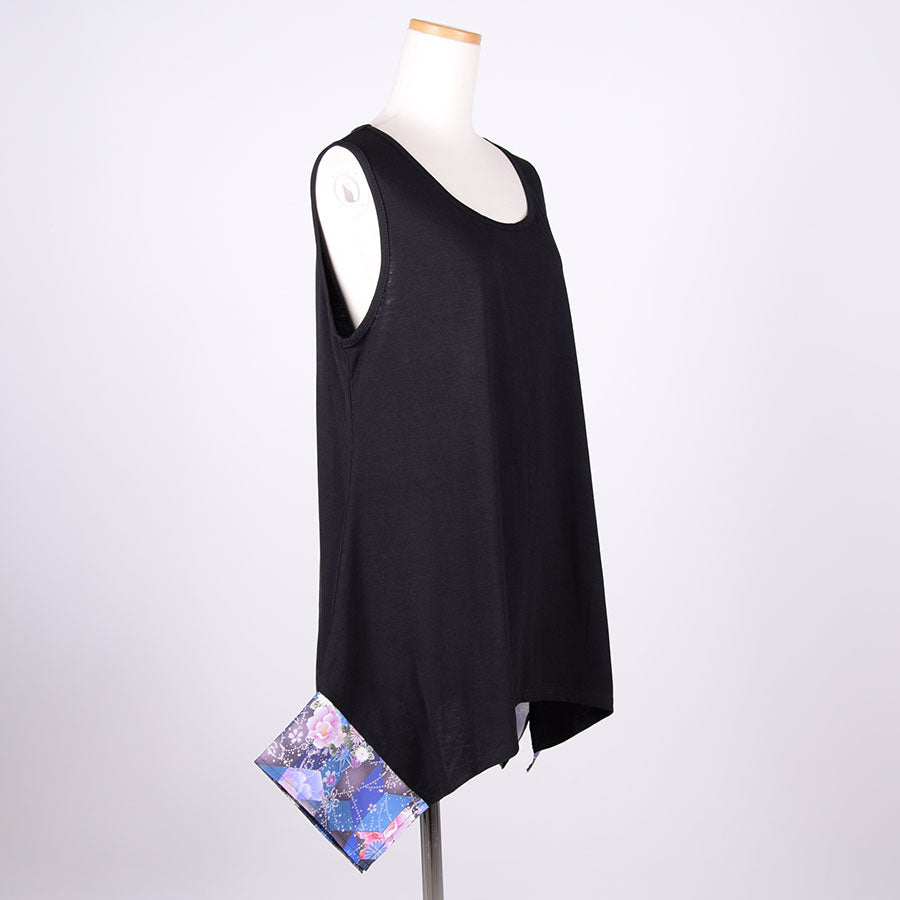 両脇が長めになっていて和柄を切り替えてあるタンクトップ。