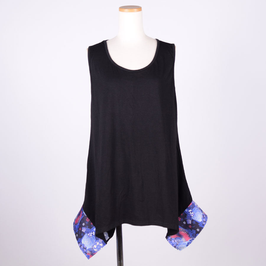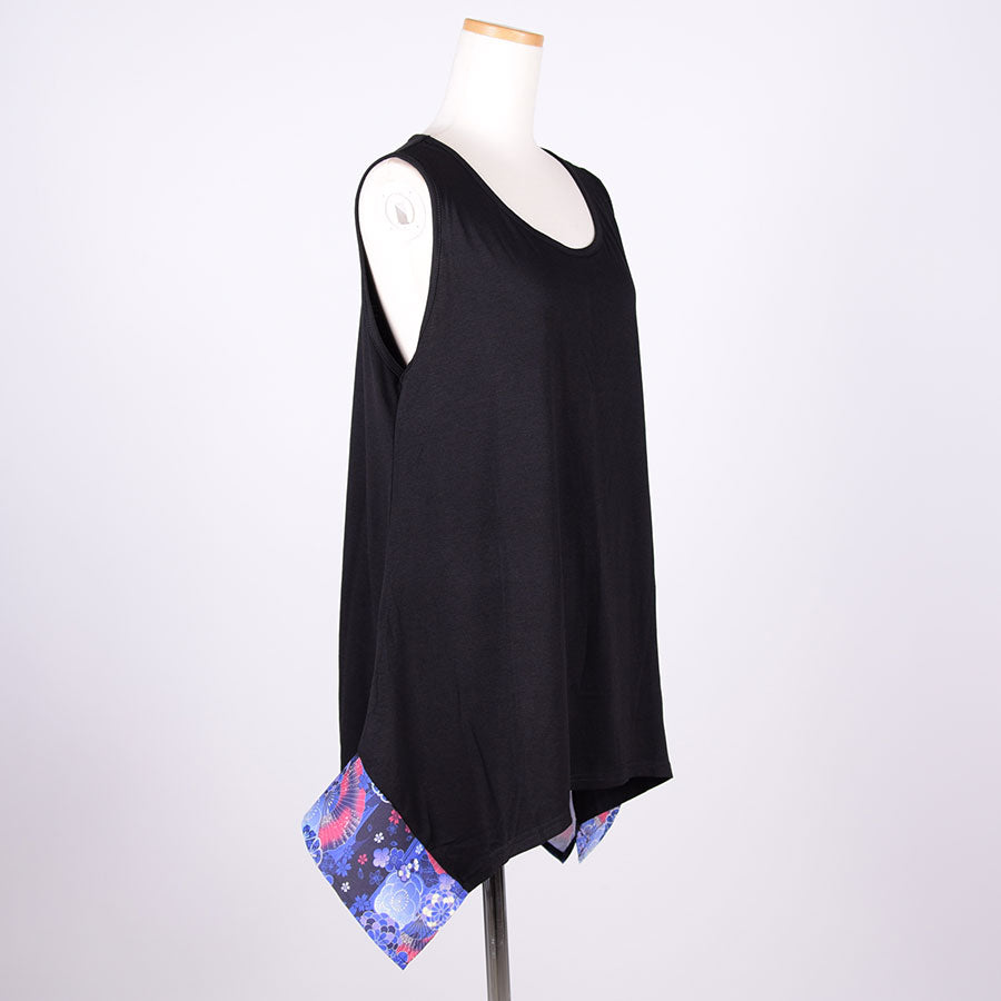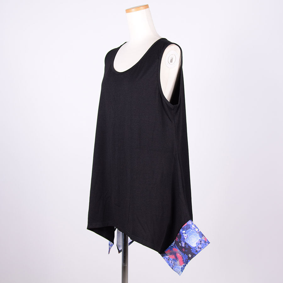 両脇が長めになっていて和柄を切り替えてあるタンクトップ。