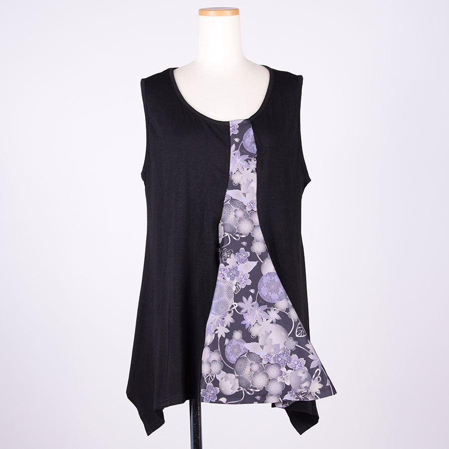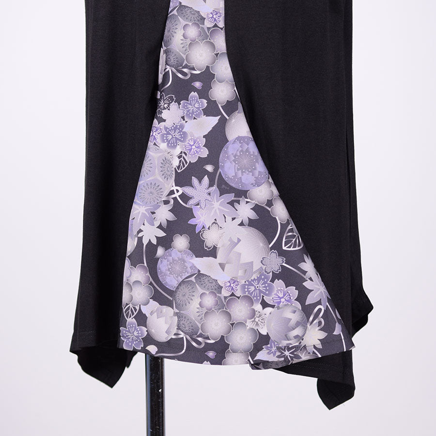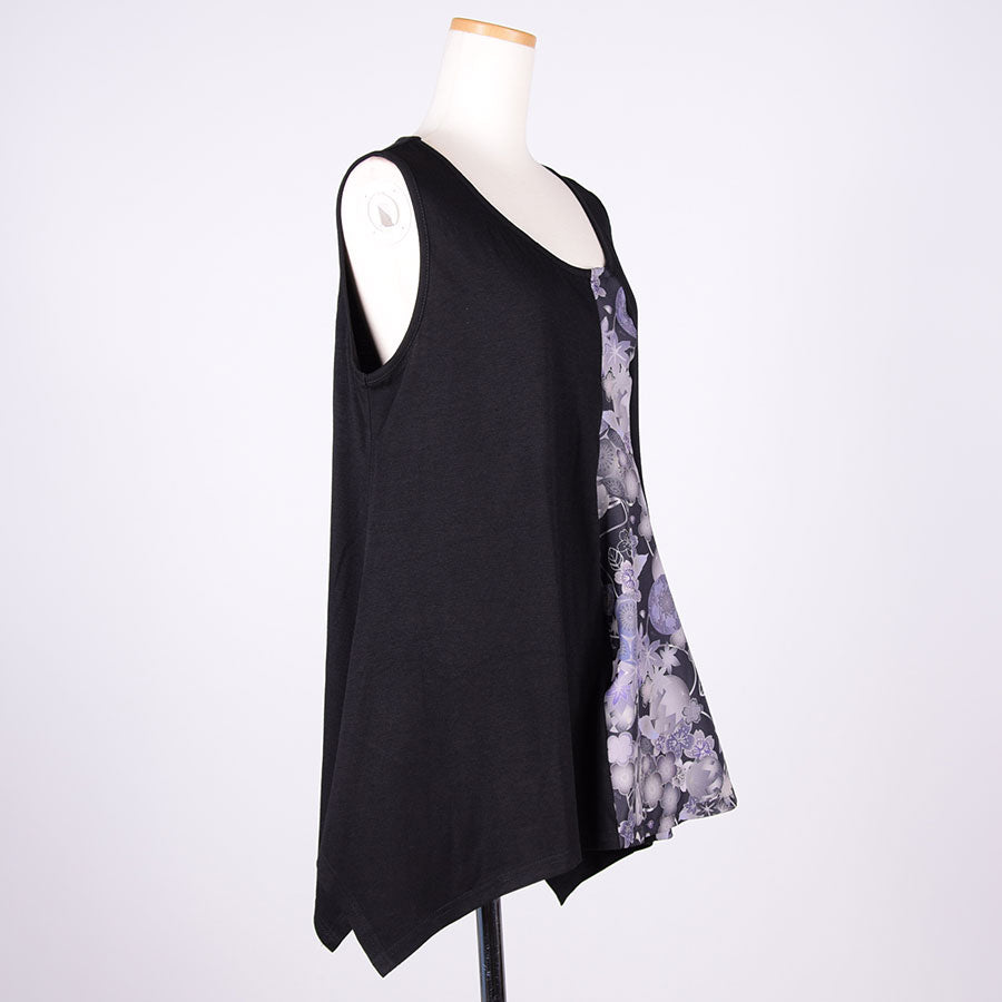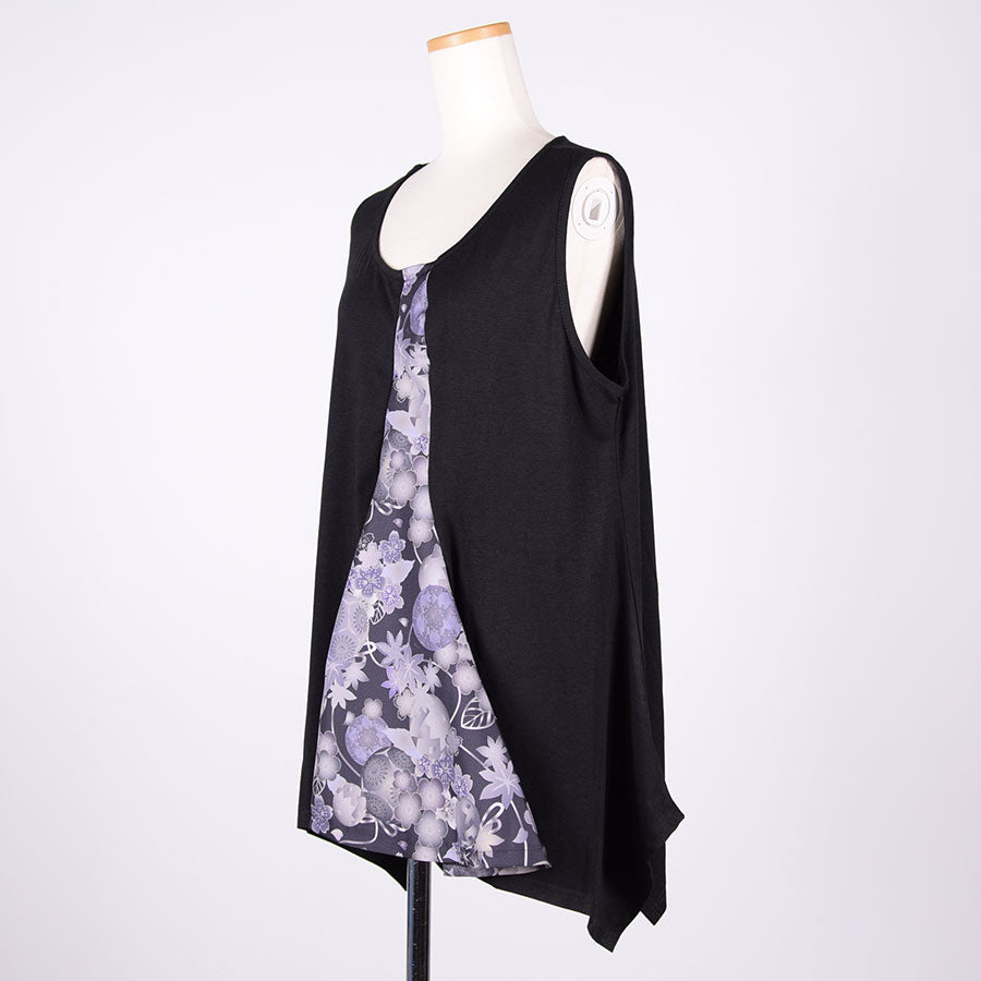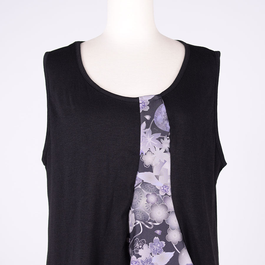 前に裾広がりに和柄を切り替えたタンクトップ。