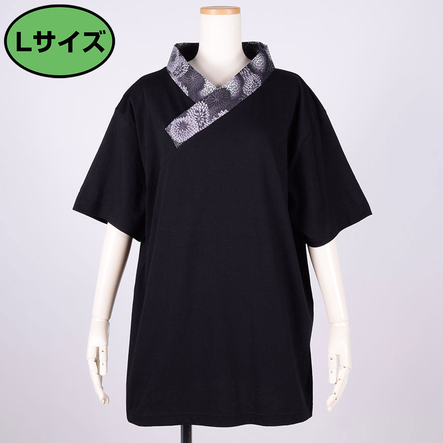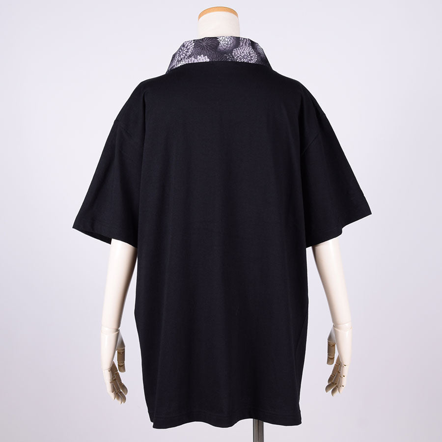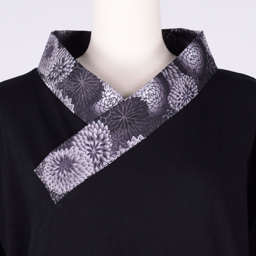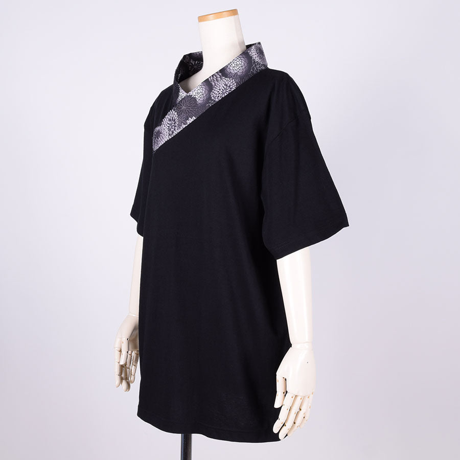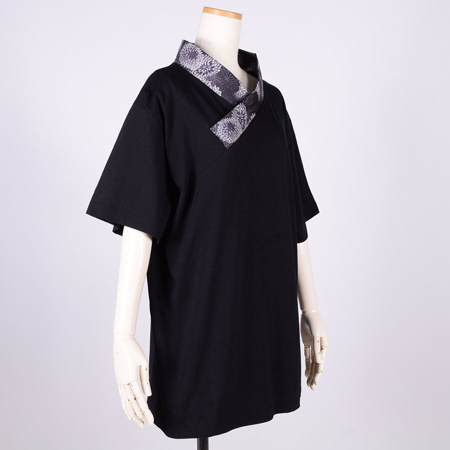 着物の襟のようにまっすぐな和柄をつけて作ったTシャツです。
