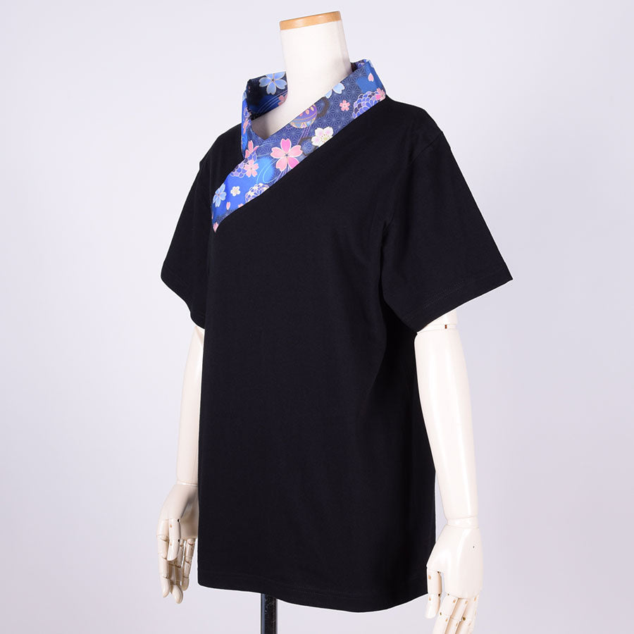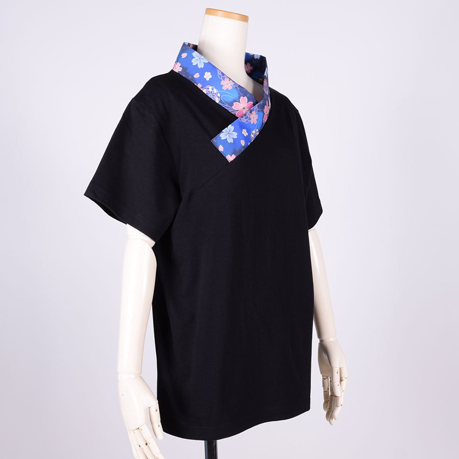 着物の襟のようにまっすぐな和柄をつけて作ったTシャツです。