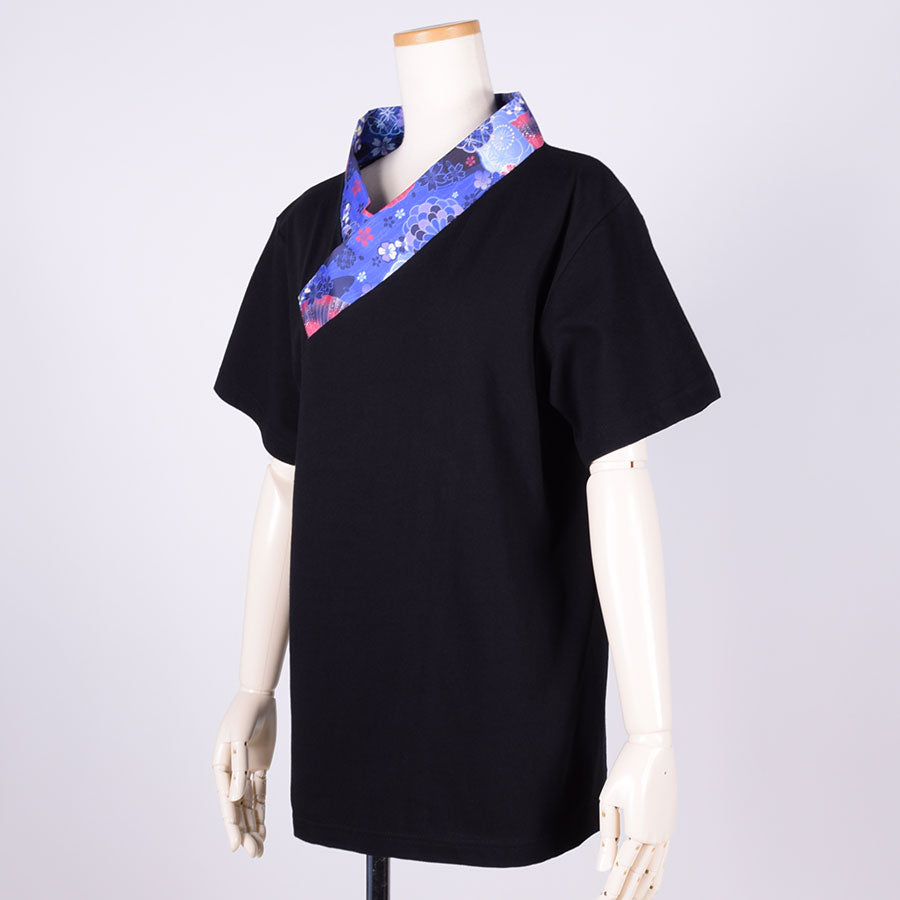 着物の襟のようにまっすぐな和柄をつけて作ったTシャツです。
