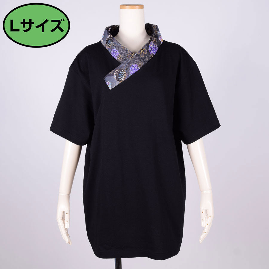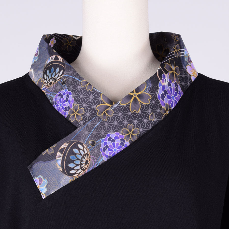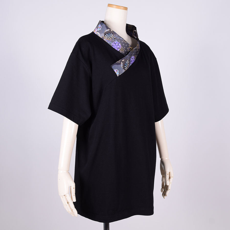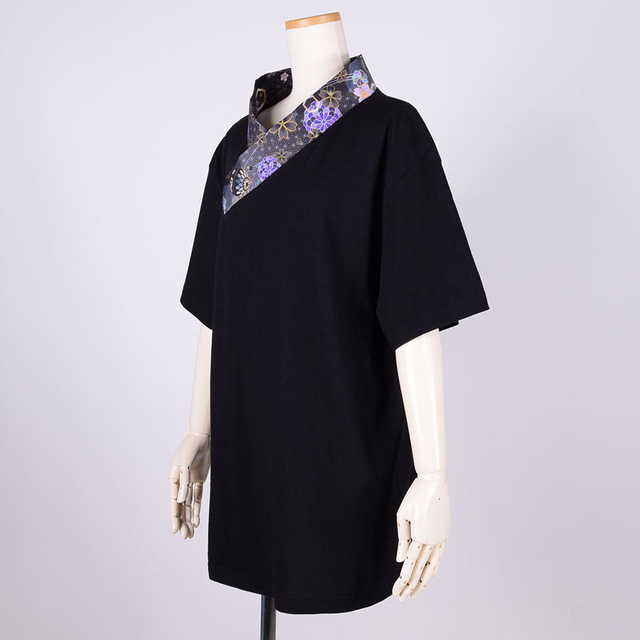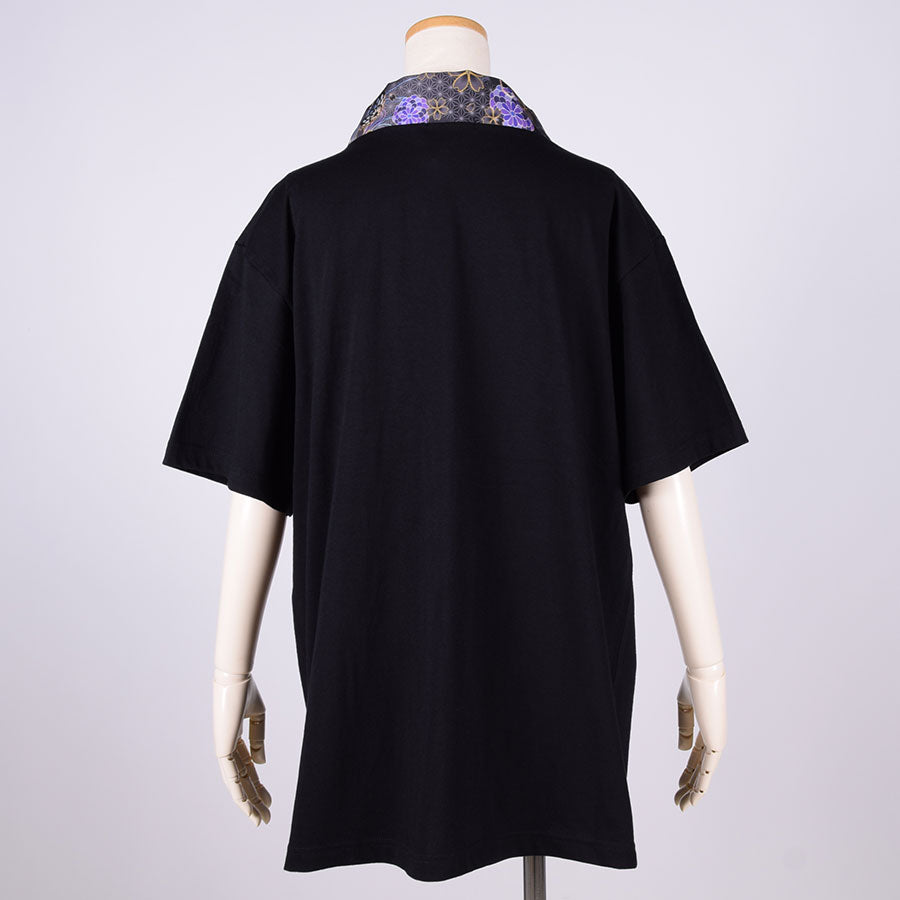 着物の襟のようにまっすぐな和柄をつけて作ったTシャツです。