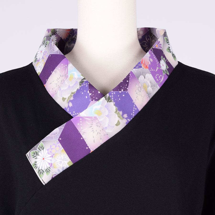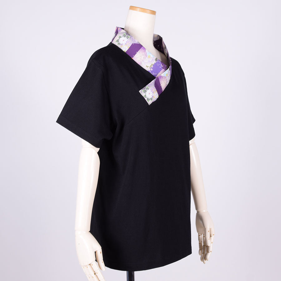 着物の襟のようにまっすぐな和柄をつけて作ったTシャツです。