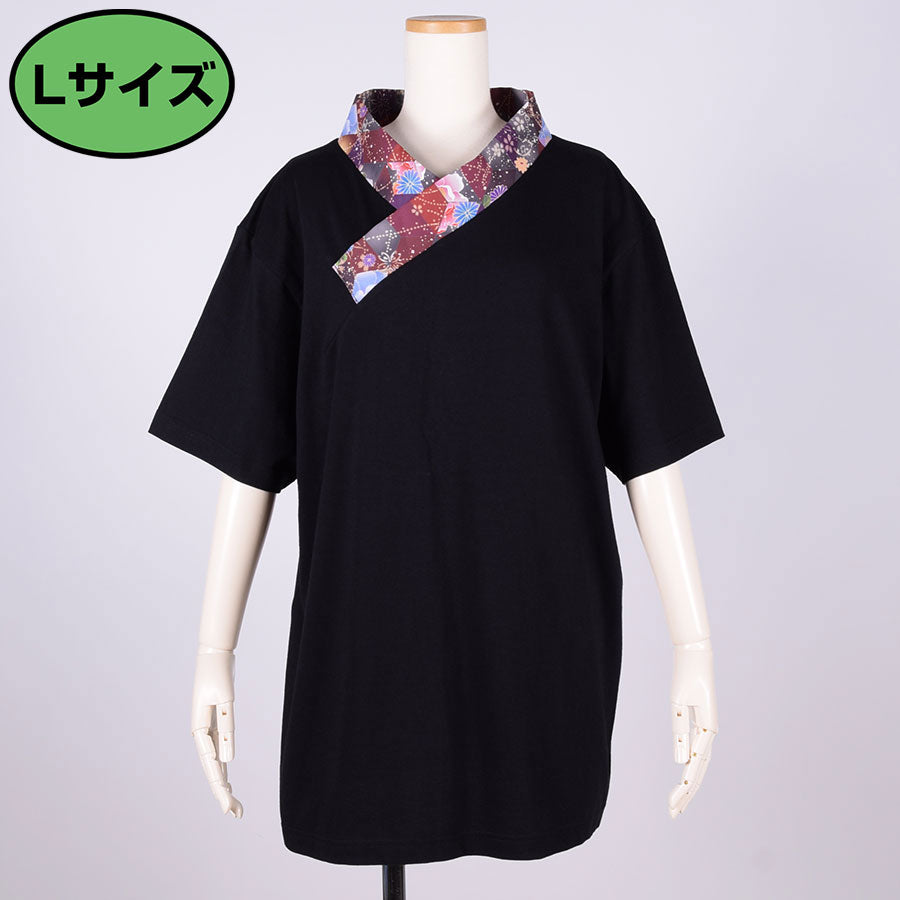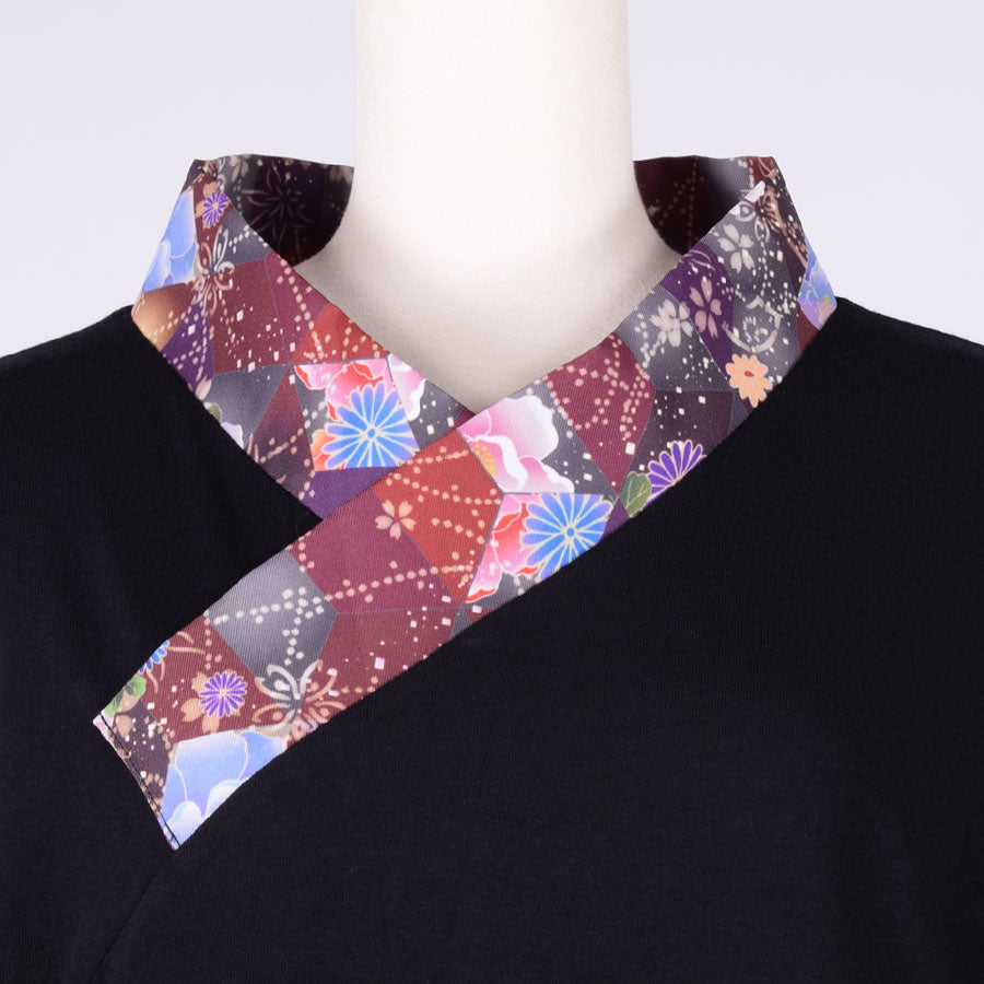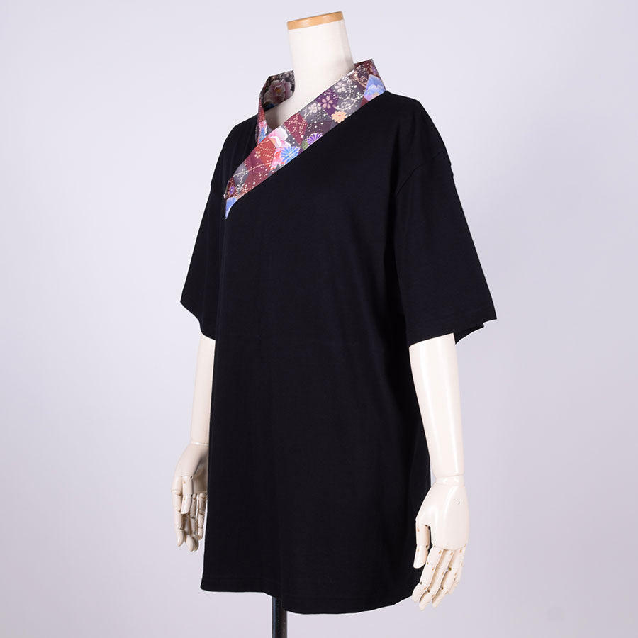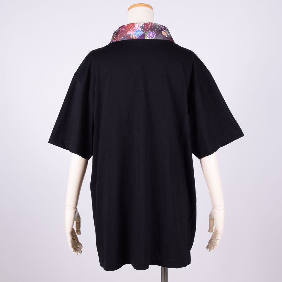 着物の襟のようにまっすぐな和柄をつけて作ったTシャツです。