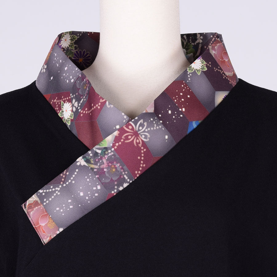 着物の襟のようにまっすぐな和柄をつけて作ったTシャツです。