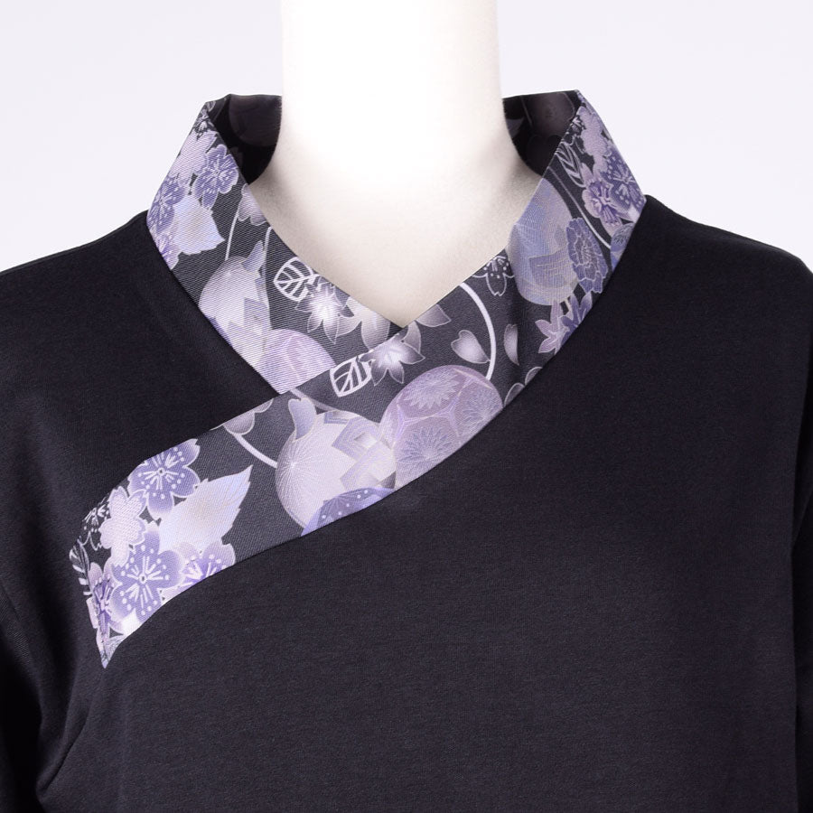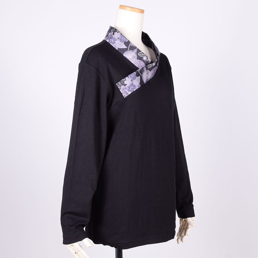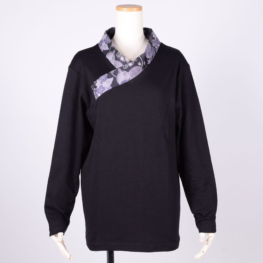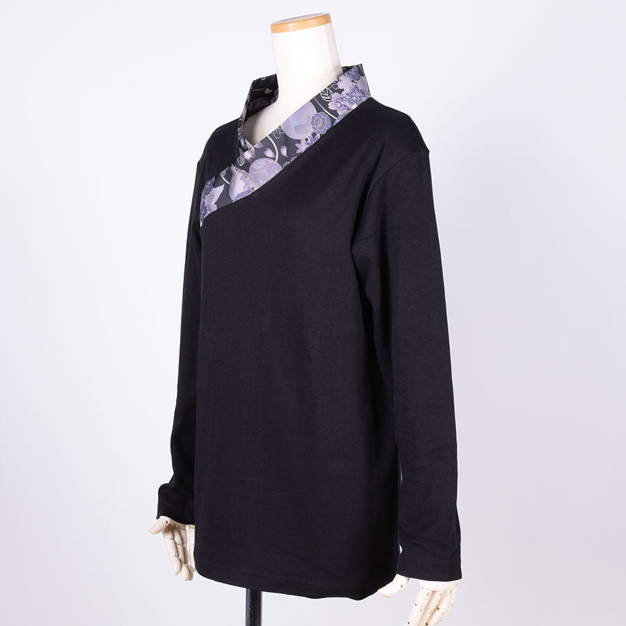 着物の襟のようにまっすぐな和柄をつけて作ったTシャツです。