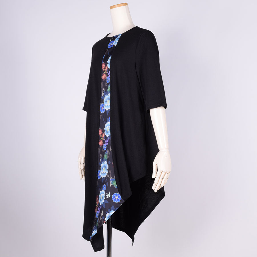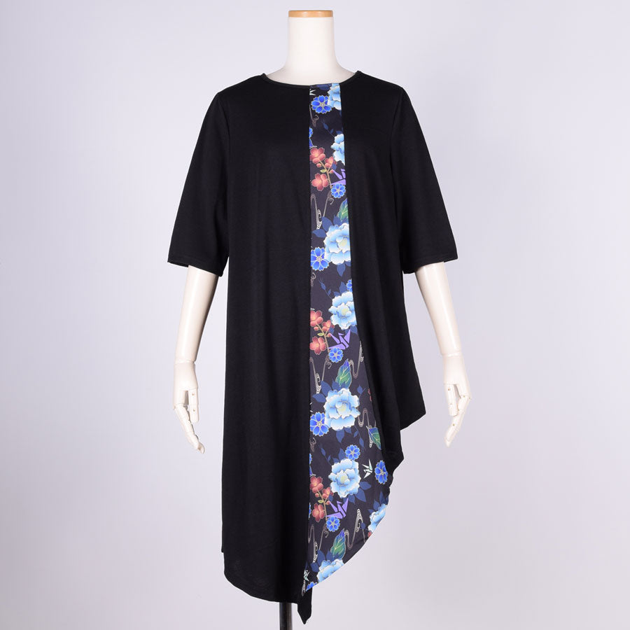 gouk 五分袖アシンメトリーワンピース BK-BL