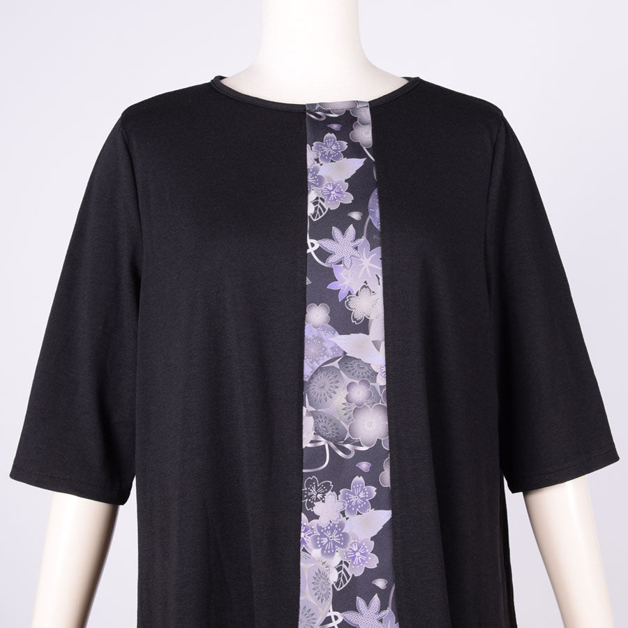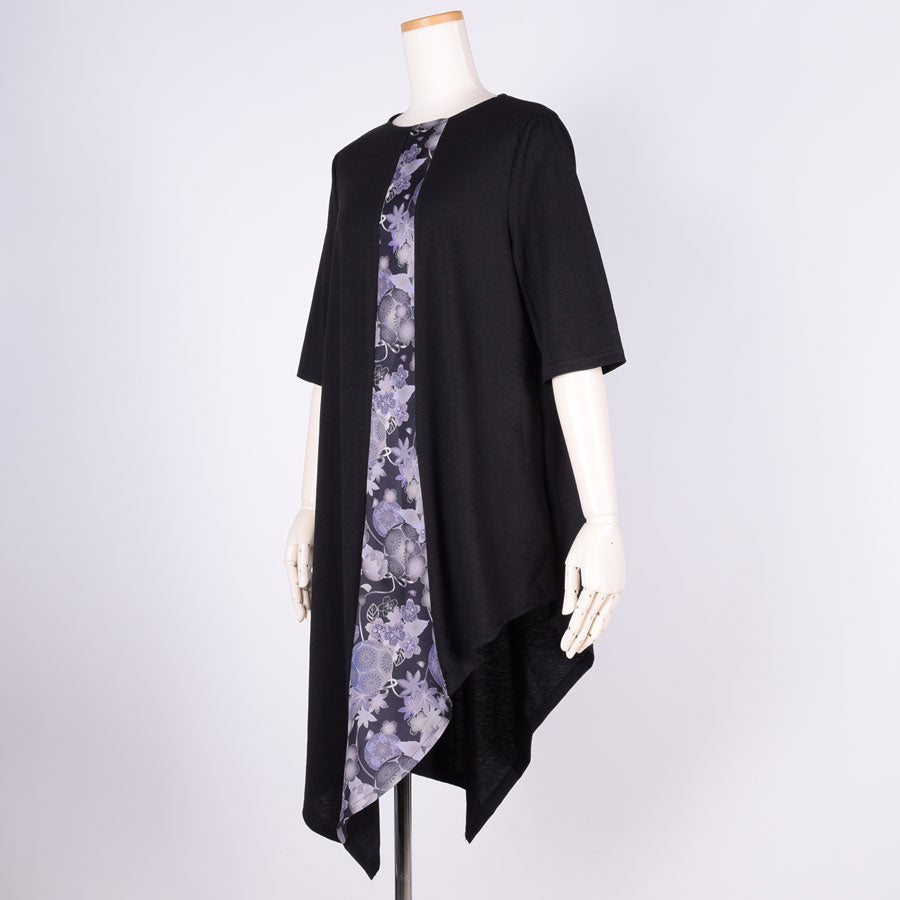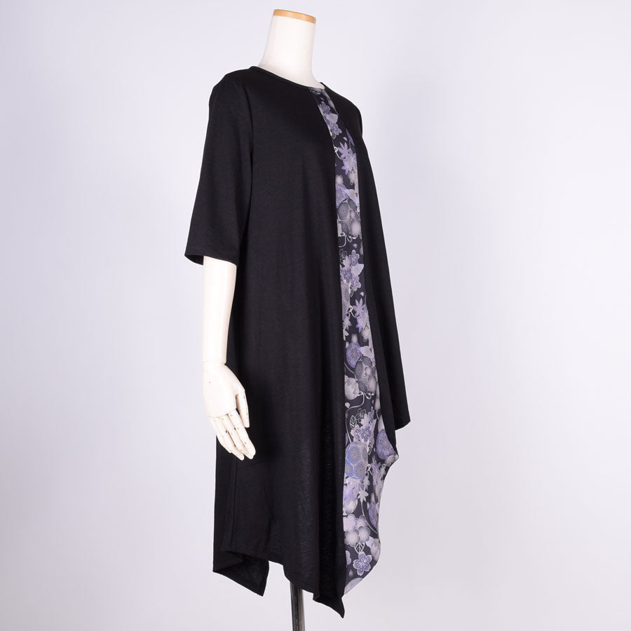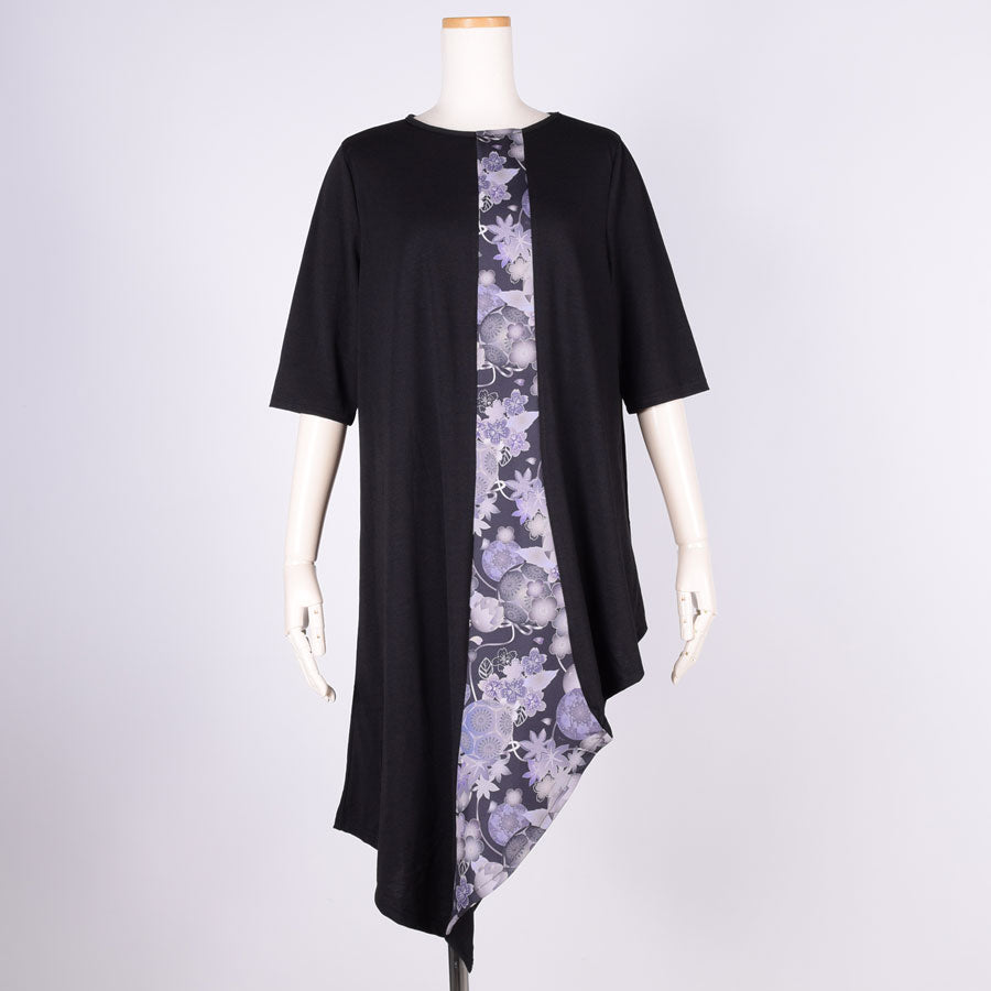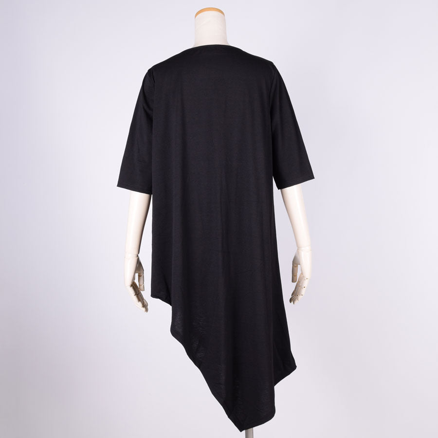 gouk 五分袖アシンメトリーワンピース BK-GY