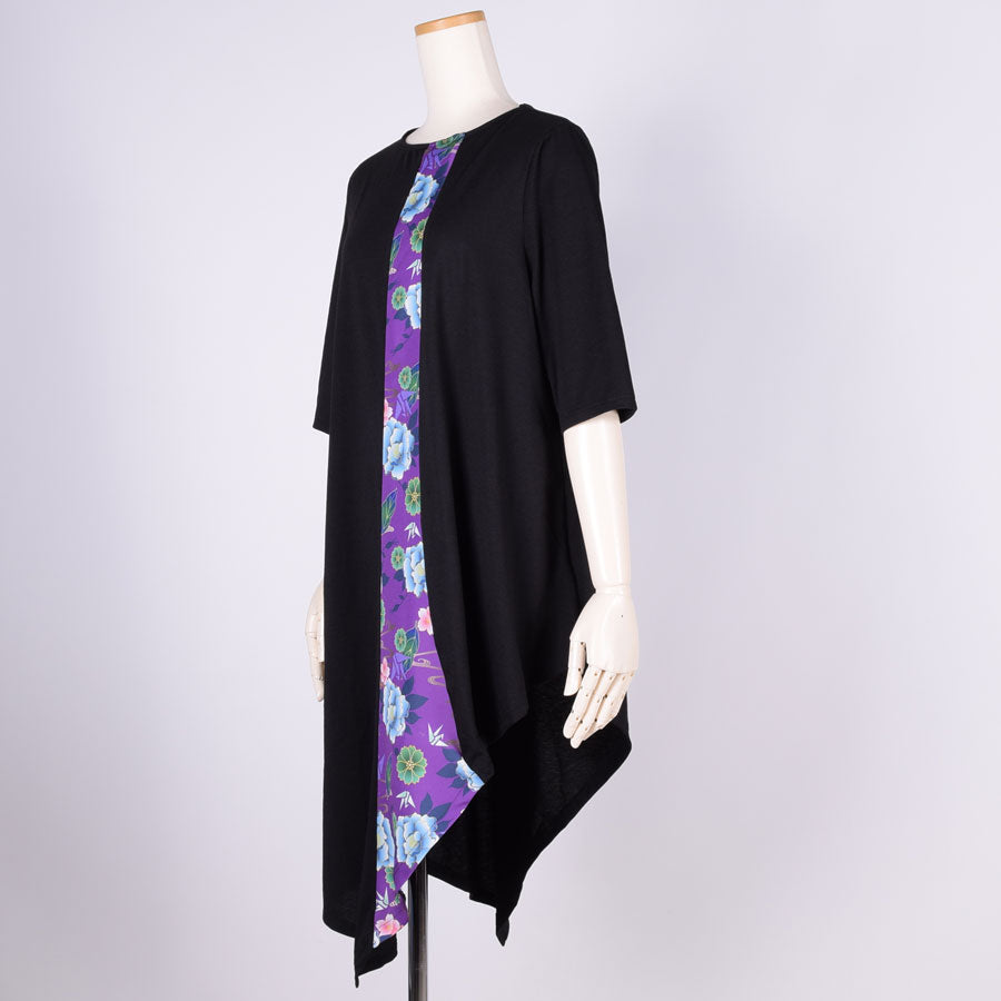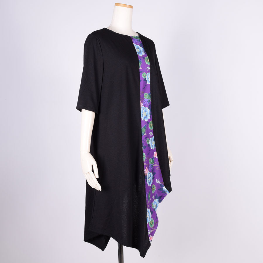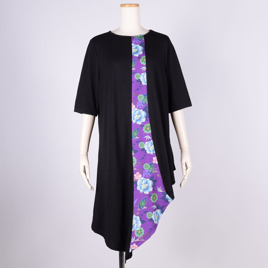 gouk 五分袖アシンメトリーワンピース BK-PUR