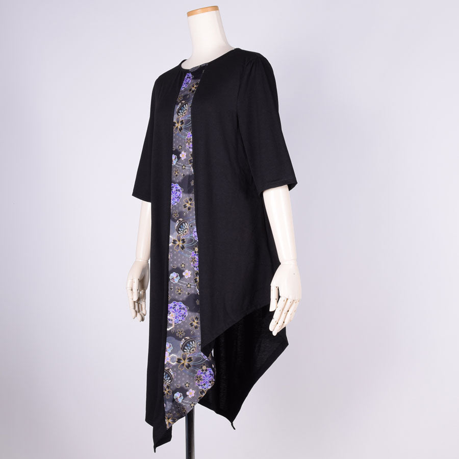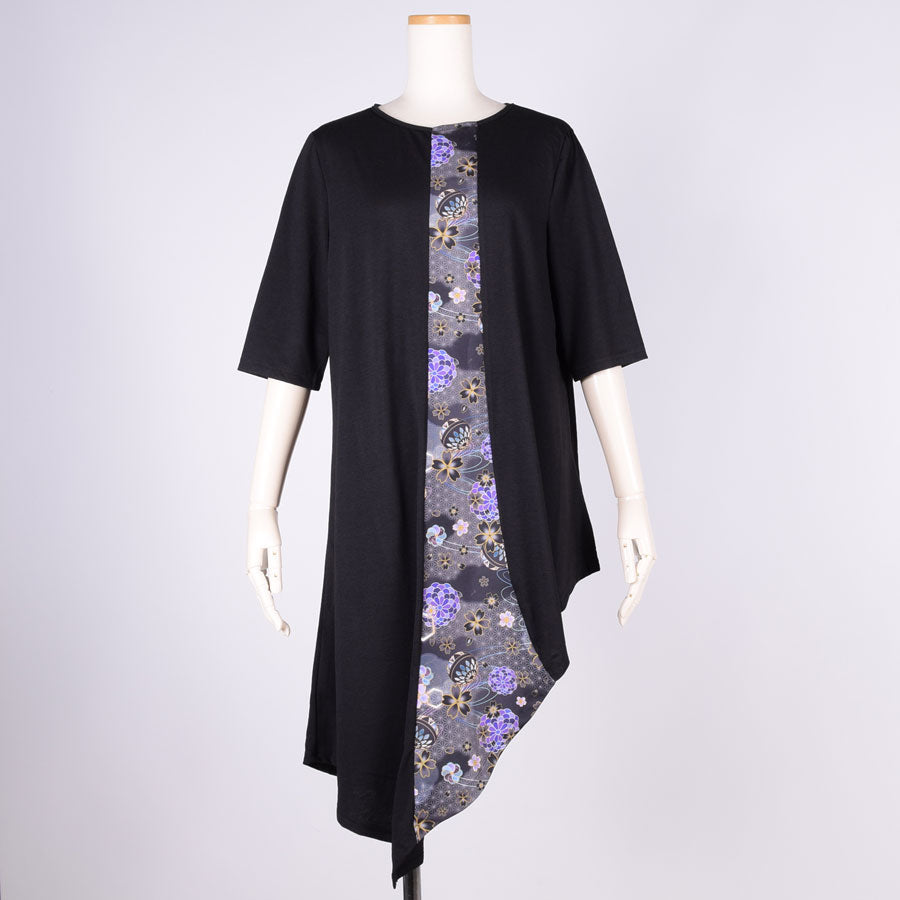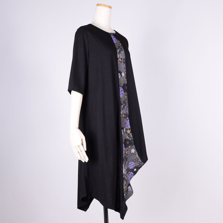 gouk 五分袖アシンメトリーワンピース BK-YEL