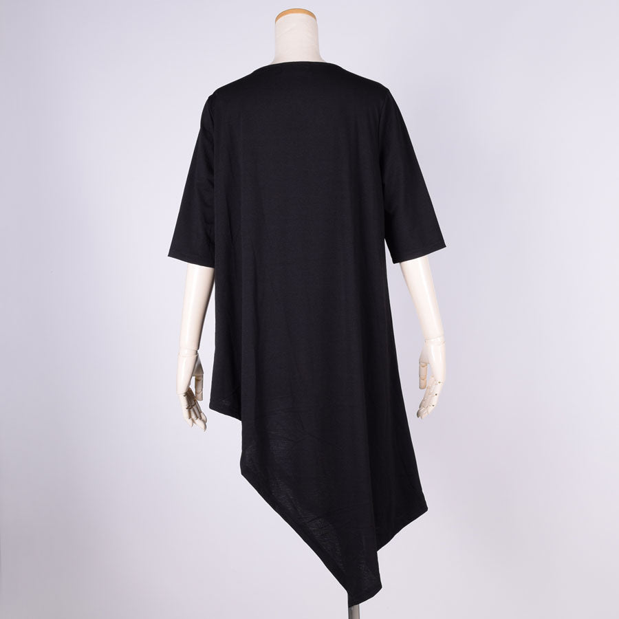 左側に丈が長くなったカットソーワンピース。