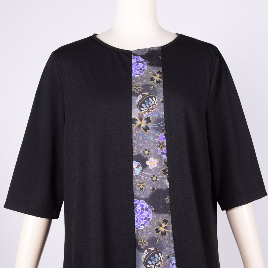 前には、goukのオリジナル和柄を川が流れるように裾に向かって広がった切り替えをしています。