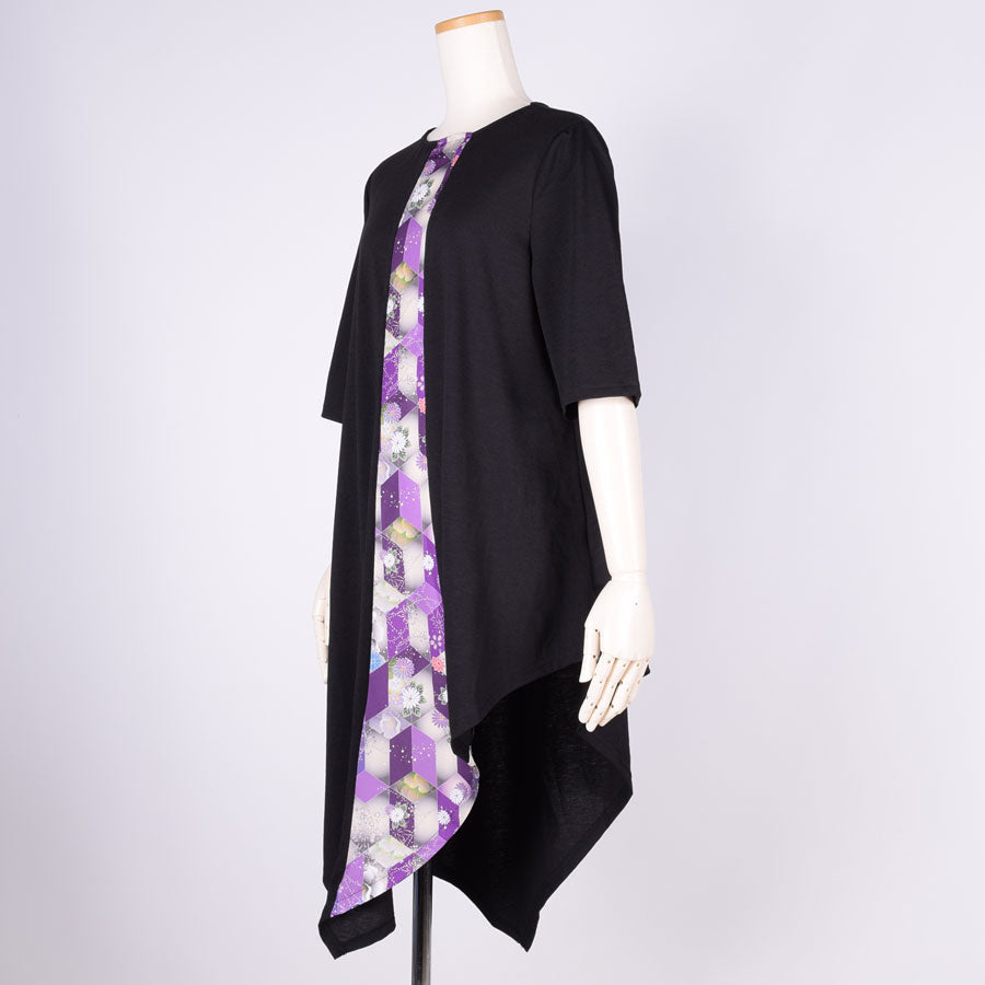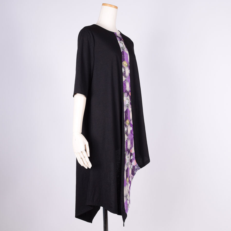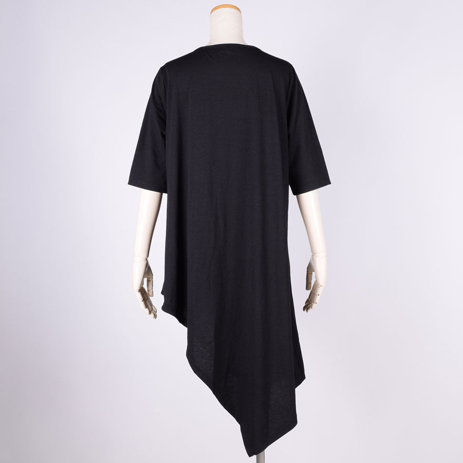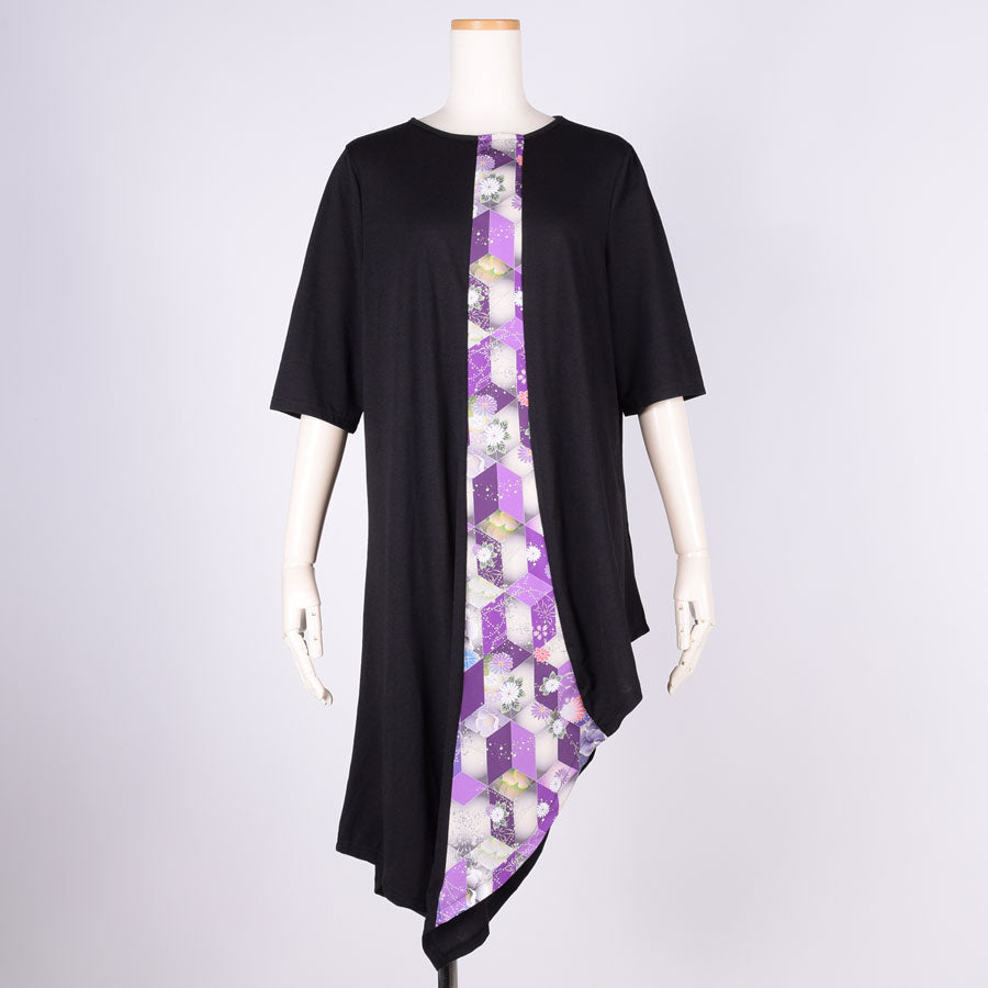 gouk 五分袖アシンメトリーワンピース PUR-BK