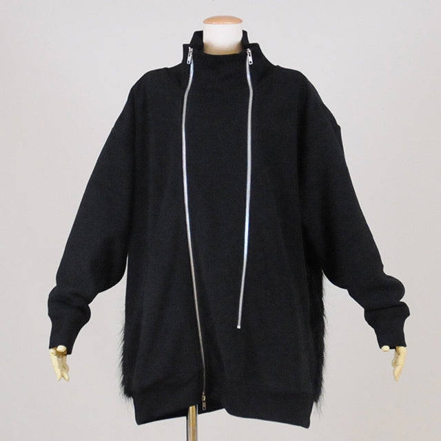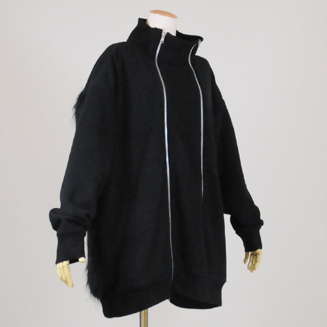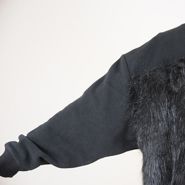 身頃はフリース素材を使っていて、後ろ身頃にはエコファーで切り替えてあります。
