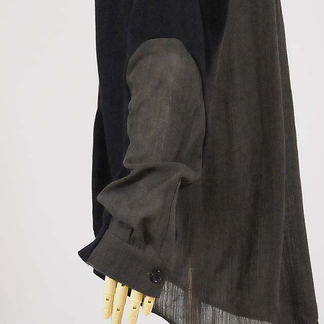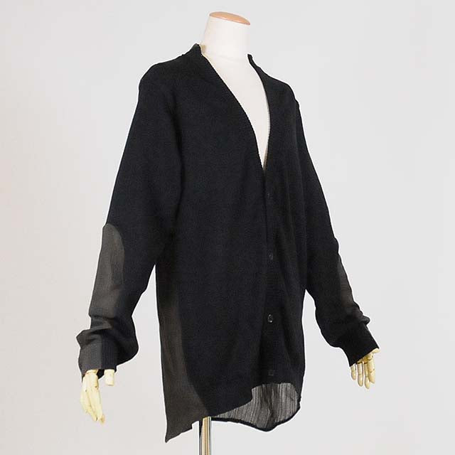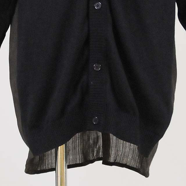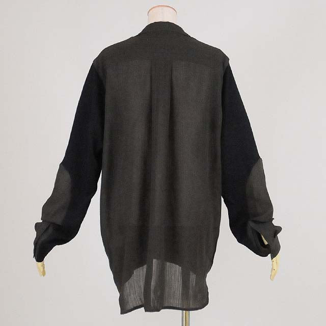 前から見ると普通のVネックカーディガンですが、後ろから見るとシャツという面白いアイテムです。 袖も半分シャツで半分ニットになっている凝ったカーディガンです。 <本体サイズ>肩幅:約49cm バスト:約114cm 着丈:約82cm 袖丈:約67cm 腕周り:43cm 袖口周り:25-48cm <本体A素材> 綿100% <本体B素材> 綿100% ※写真はサンプルの為、実際の商品と仕様やサイズ等が異なる場合があります。 ※商品は平置き計測により採寸されていますので、お手持ちのアイテムと商品のサイズを照らし合わせてからご購入されることをお勧めします。