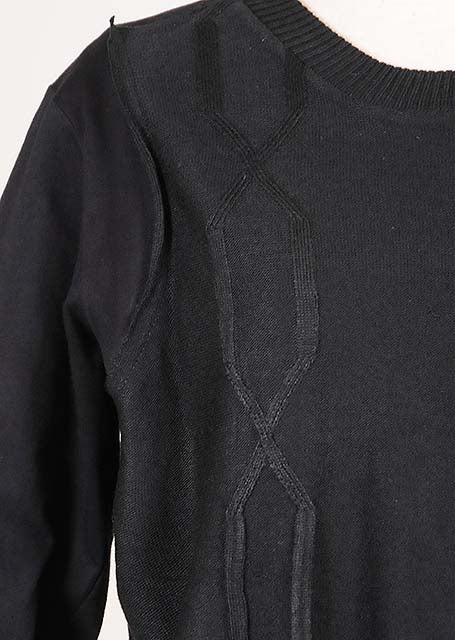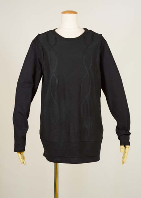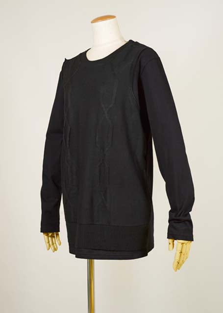 前身頃にセーターを切った物を縫い合わせたようなデザインのTシャツ