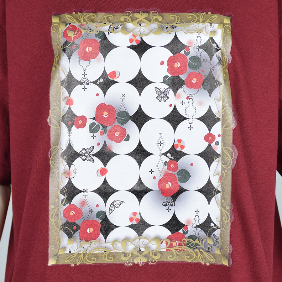 悲しみ打ちのめされても強く生きる人間の心が描かれた、「誇り」の花言葉を持つ椿のオリジナル和柄。