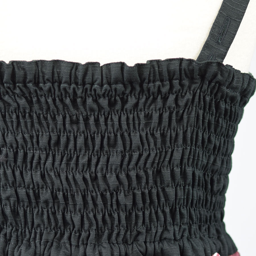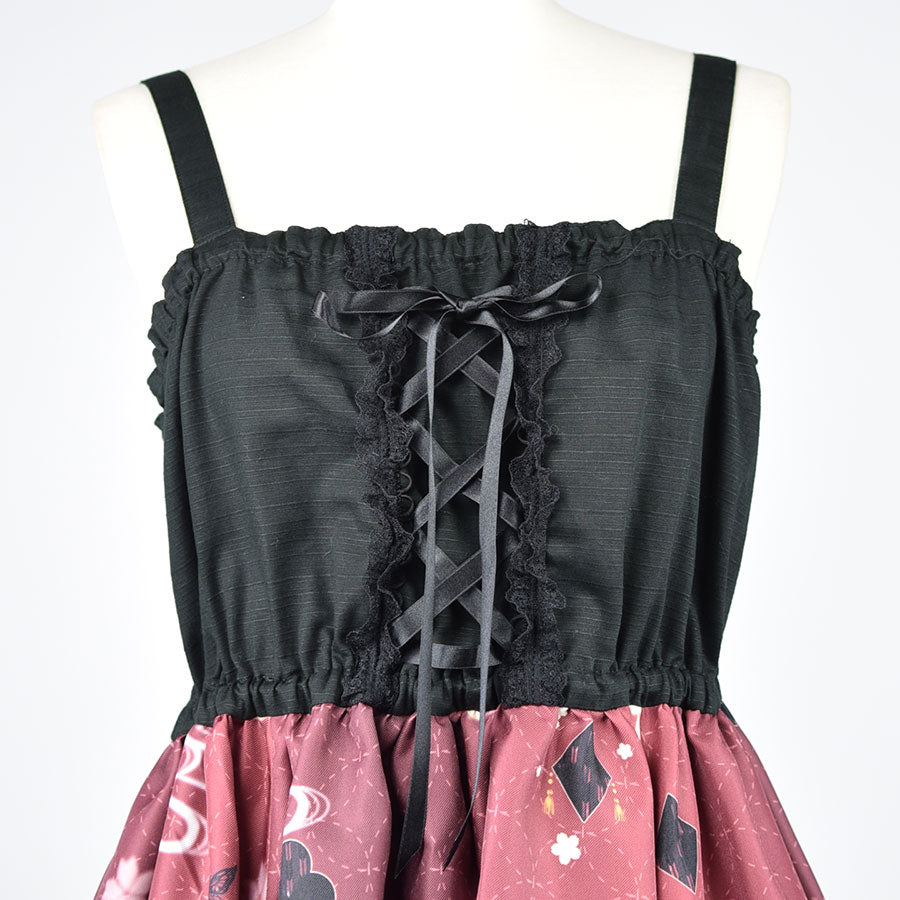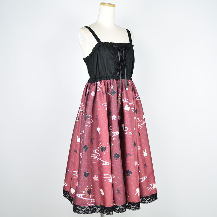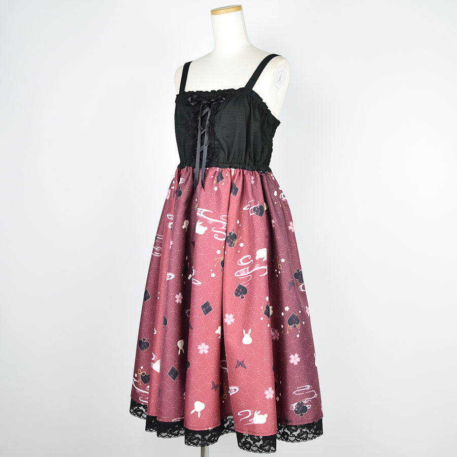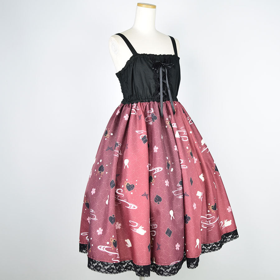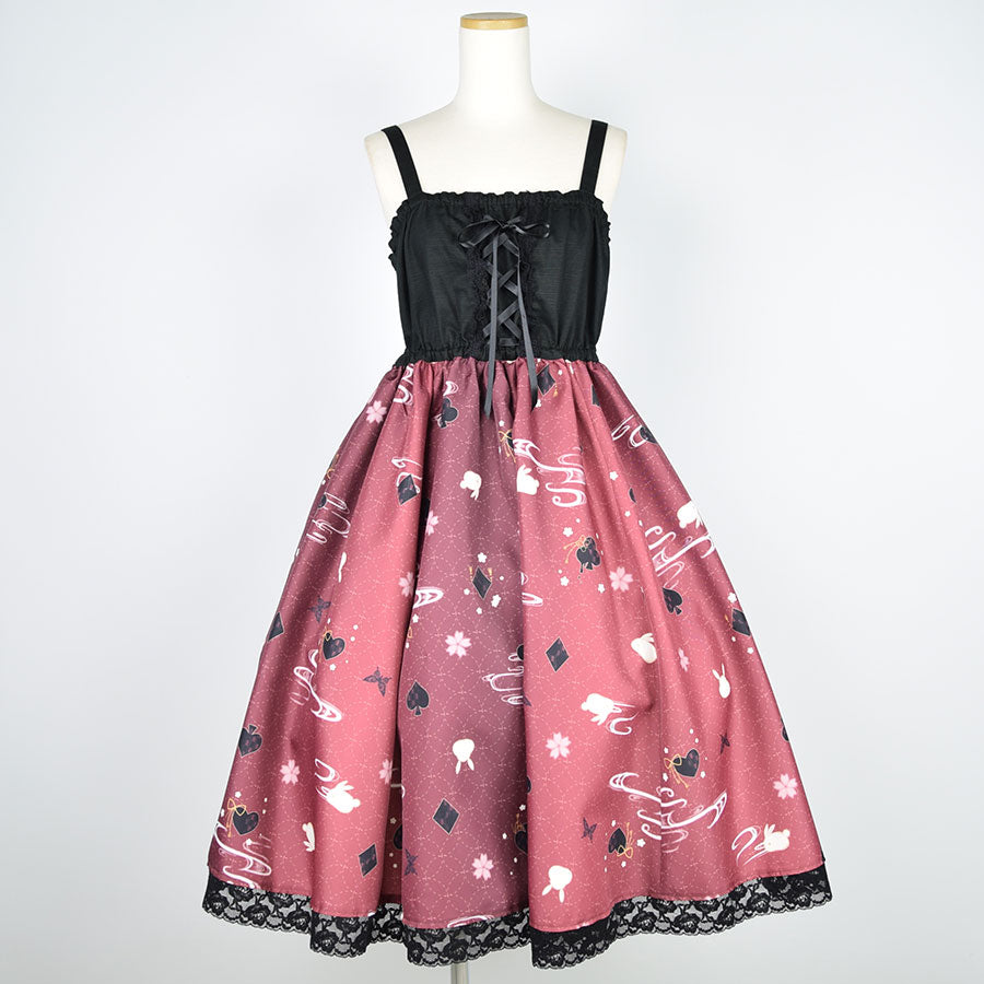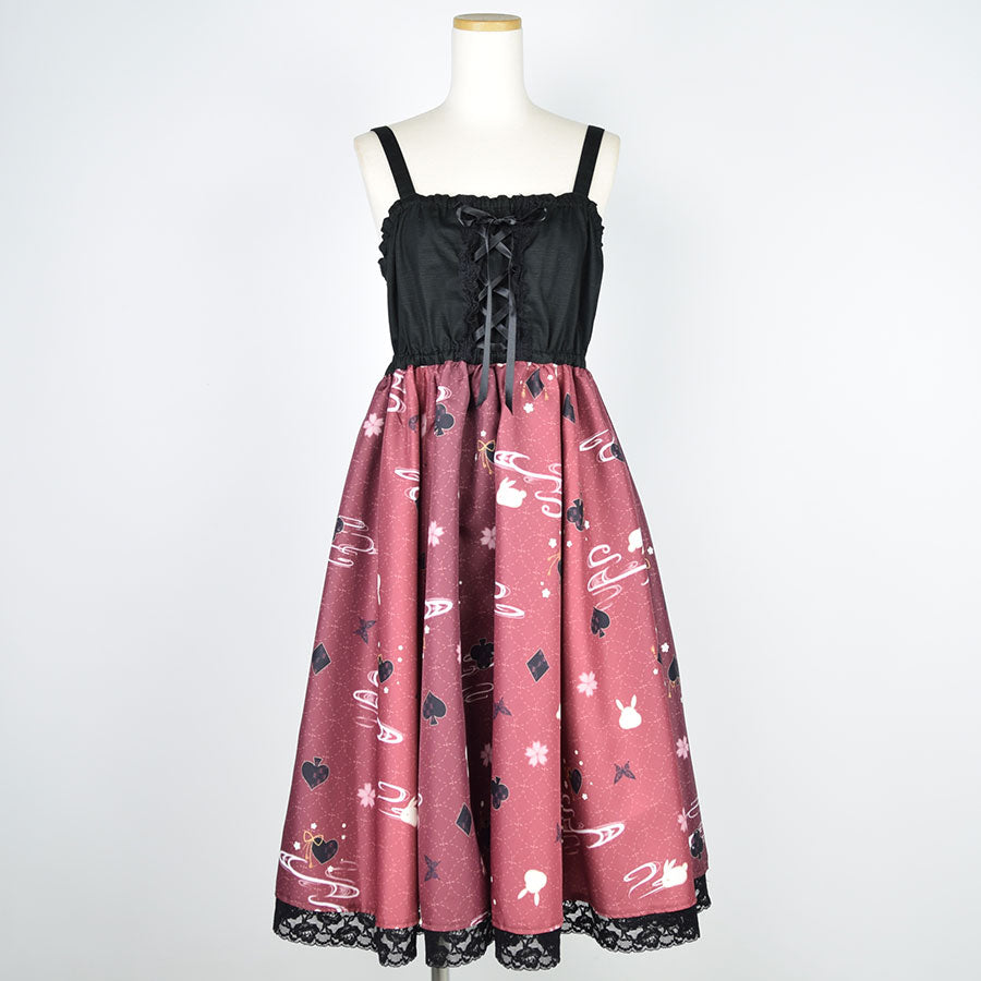 ビスチェドレスをイメージしたジャンパースカートは、 見た目の華やかさを備えつつ着心地と着やすさを兼ね揃えたデザイン。