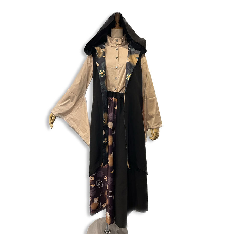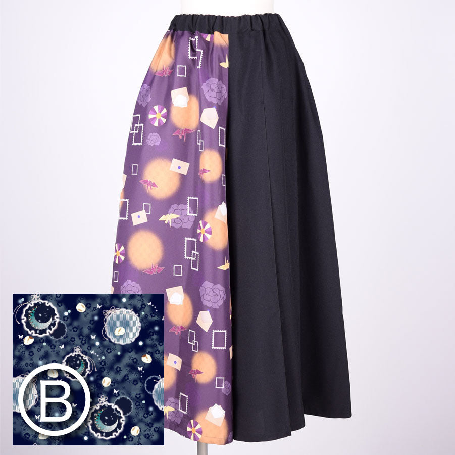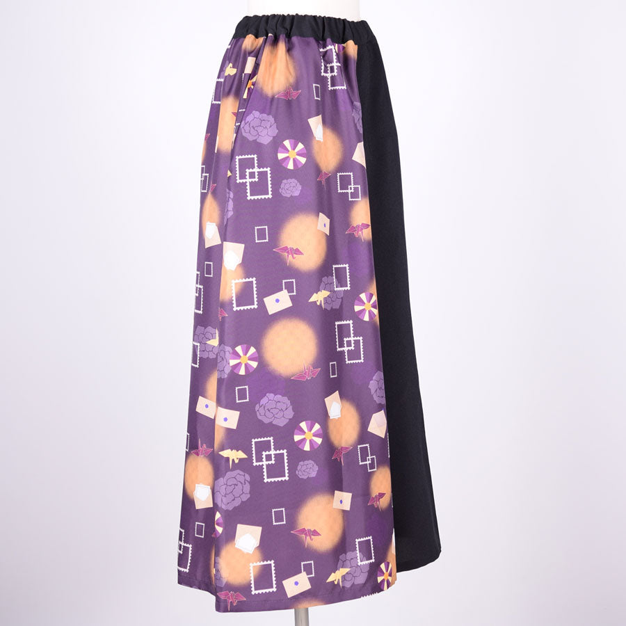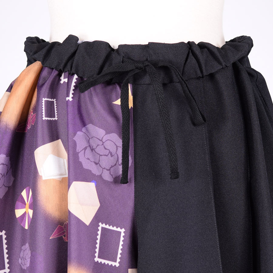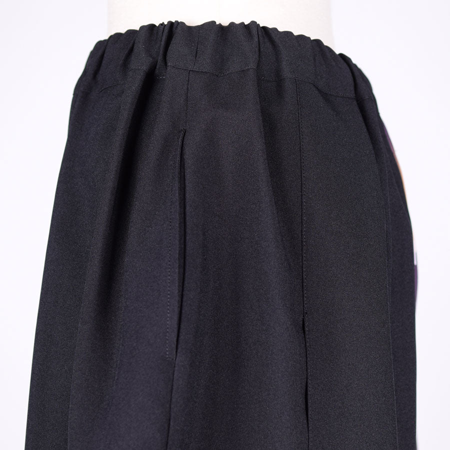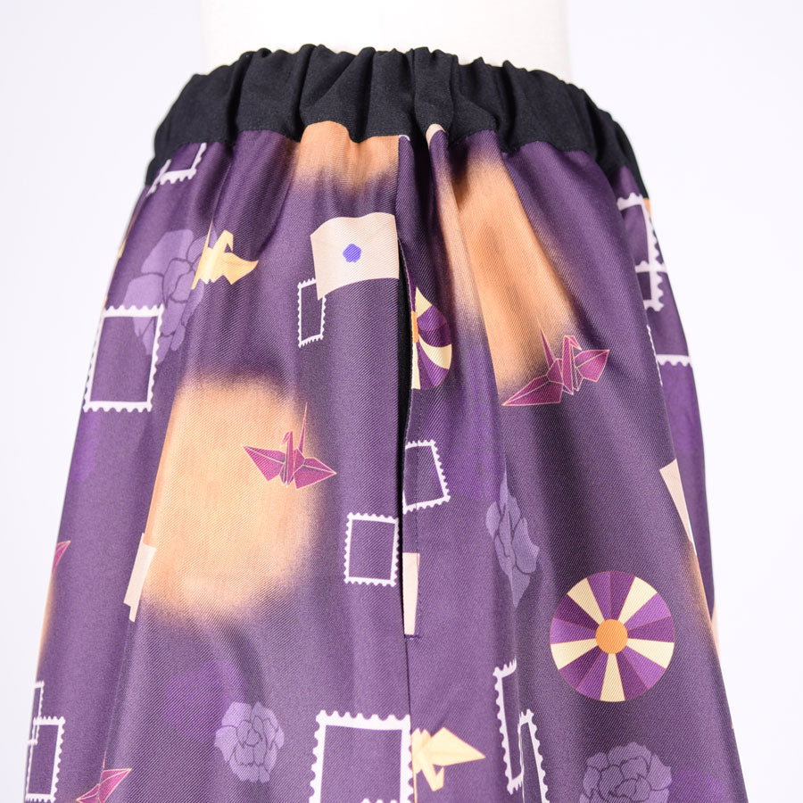 二面性のある華やかな印象ですが、ウエストはゴムと紐で様々なサイズに対応でき、ポケットも付いていて実用的です。
