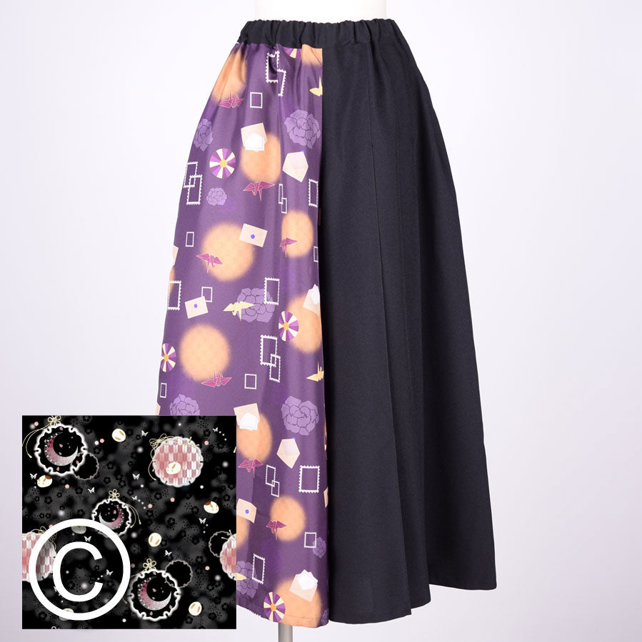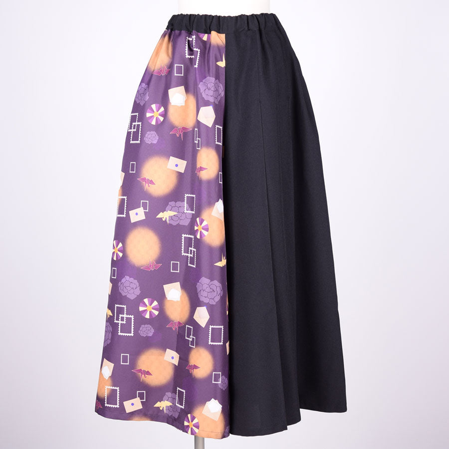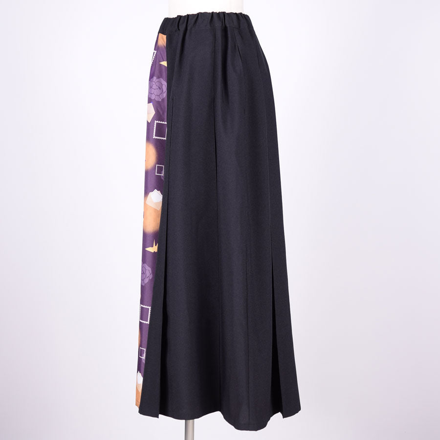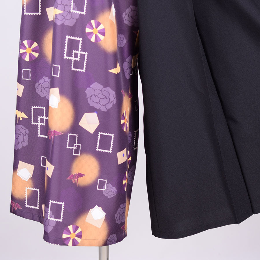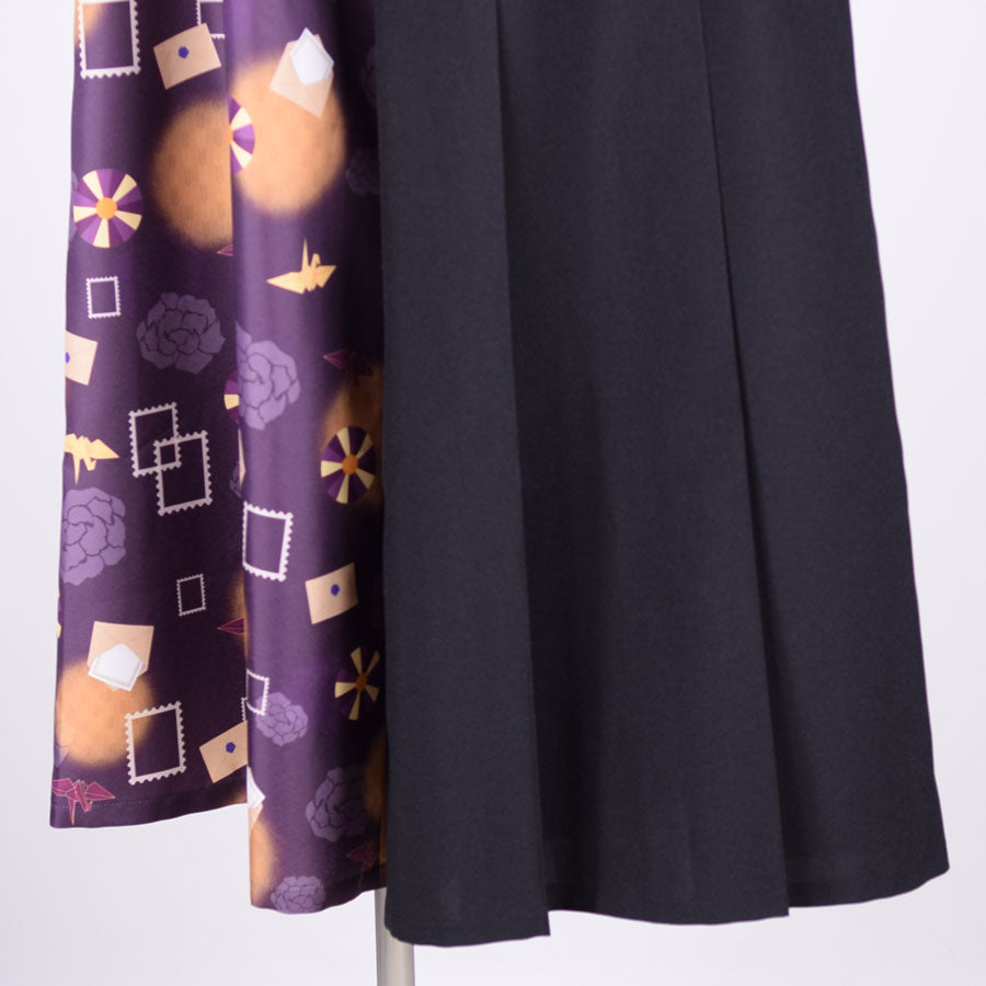 半分が袴をイメージしたプリーツ、半分が和柄をいっぱい使ったデザイン。