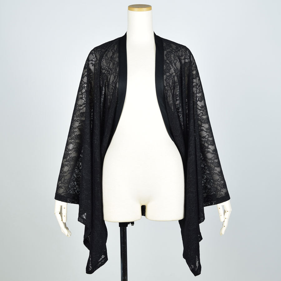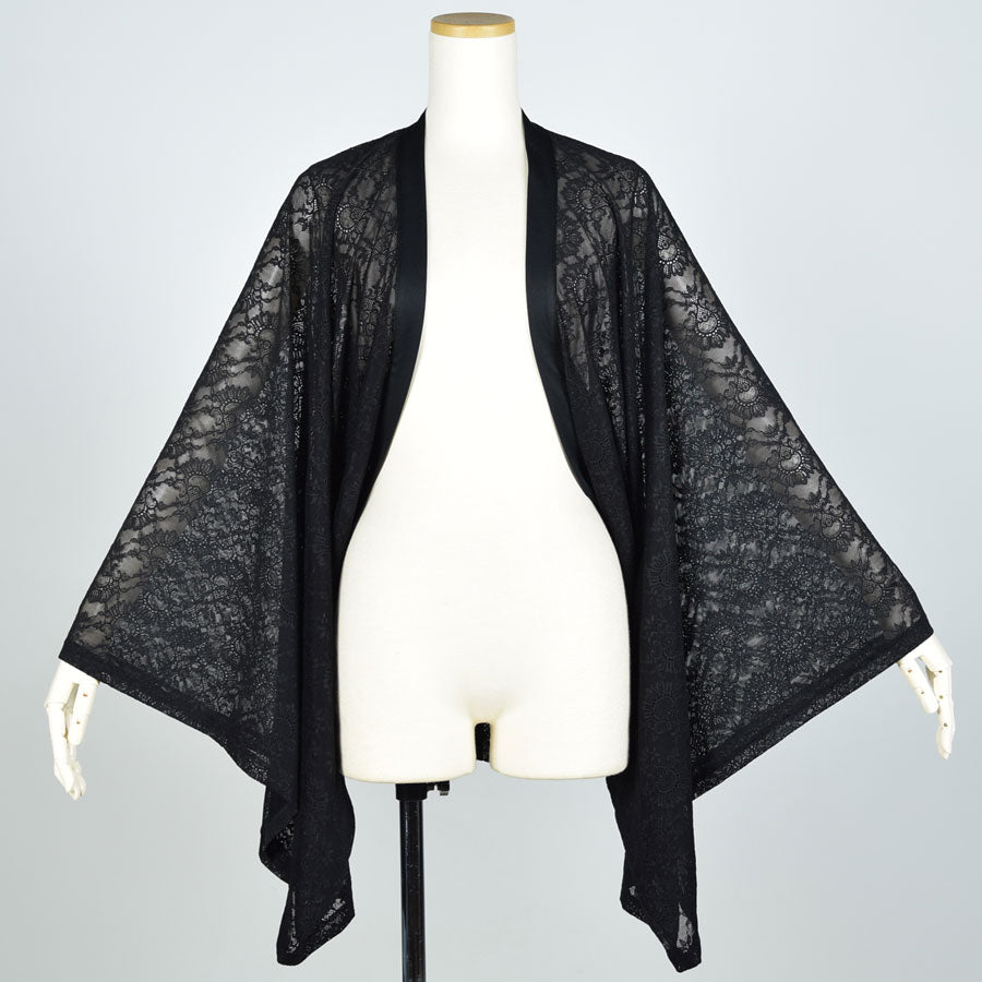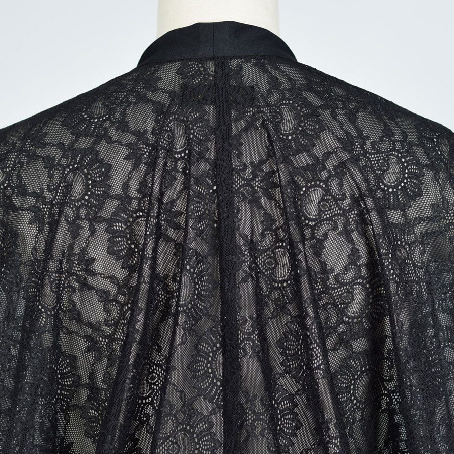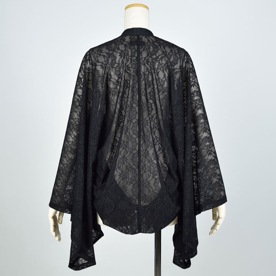 伸縮性のある生地で仕立てた、筒形のレースの羽織です。