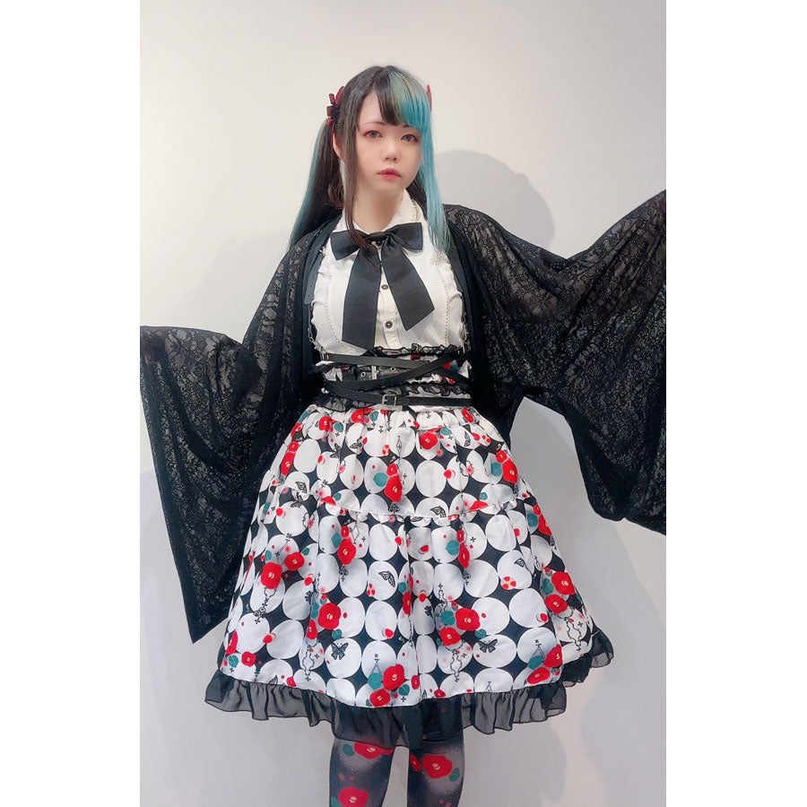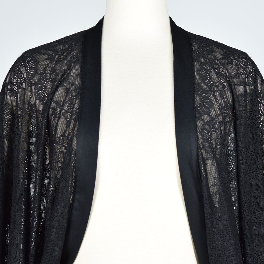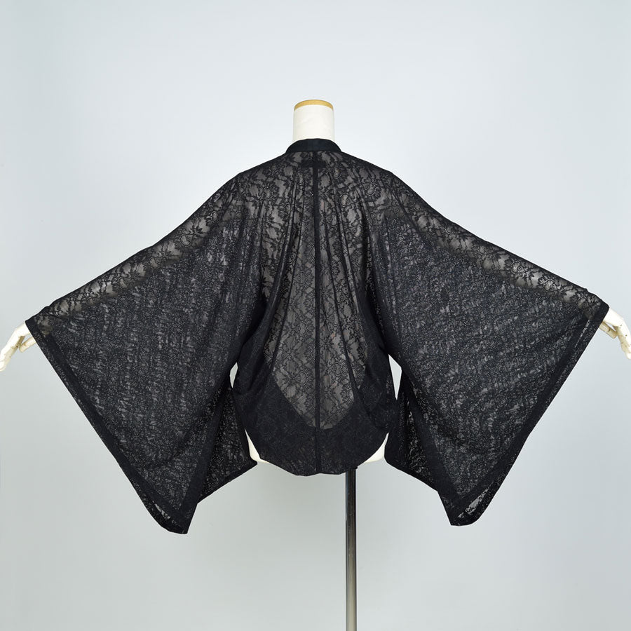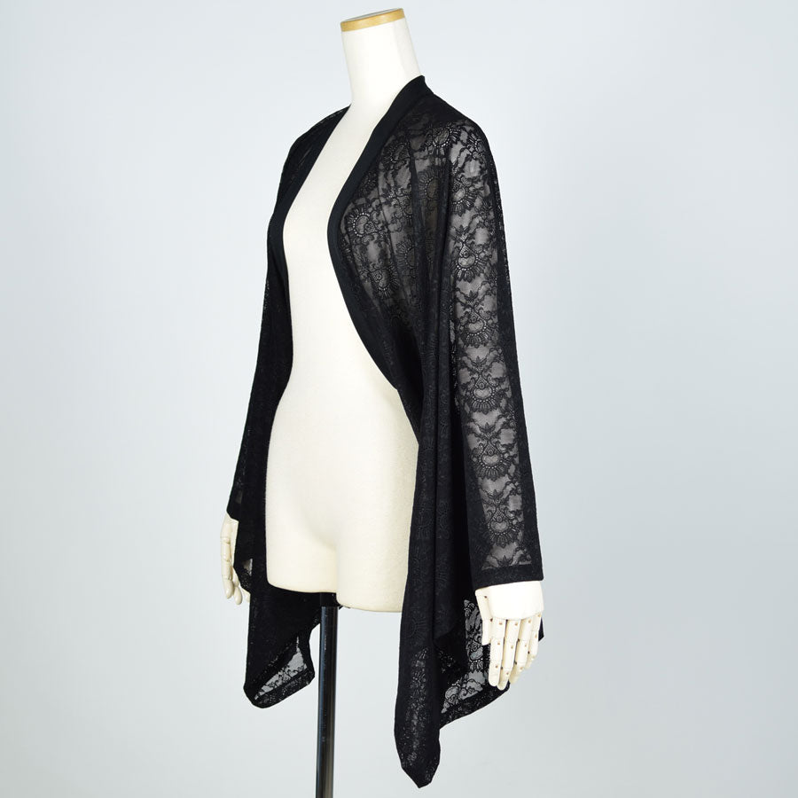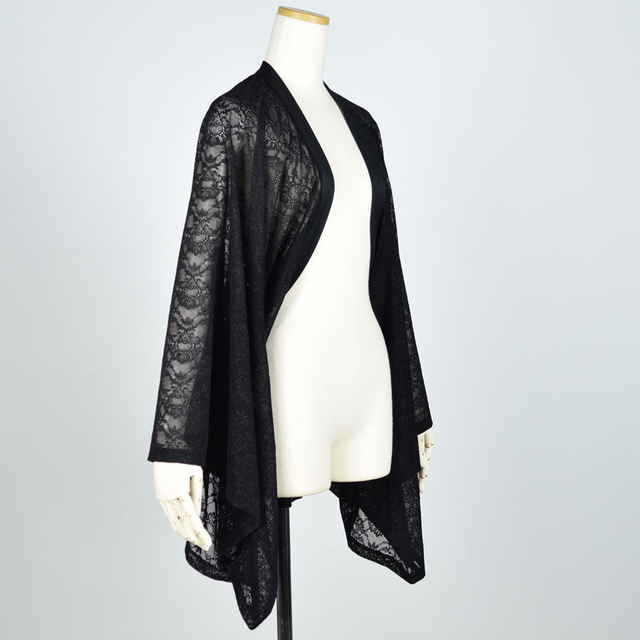 伸縮性のある生地で仕立てた、筒形のレースの羽織です。