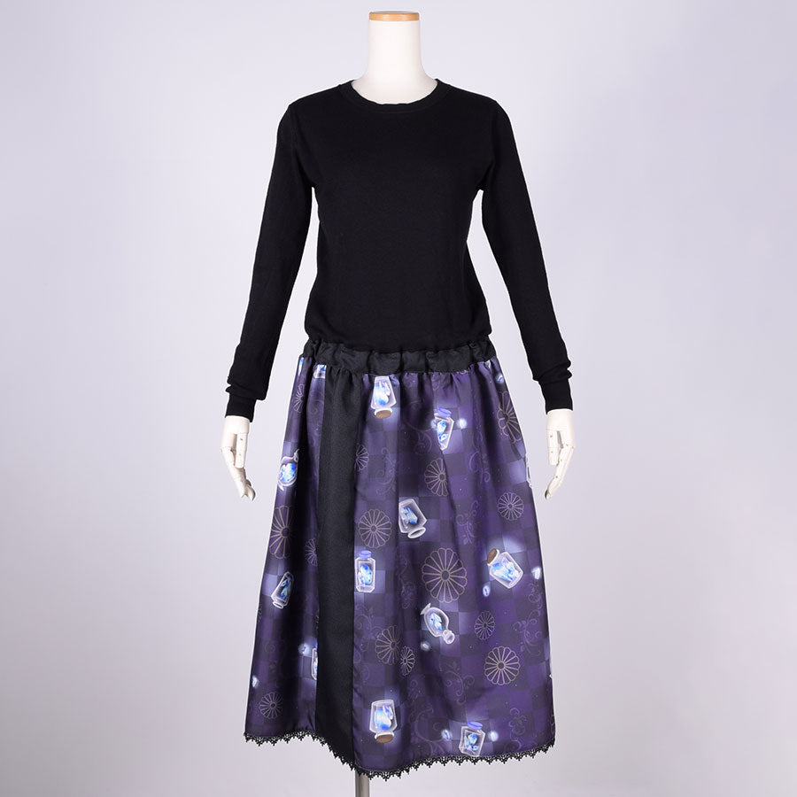 ニット素材と和柄生地を組み合わせた、一枚でスタイルが決まるワンピースです。