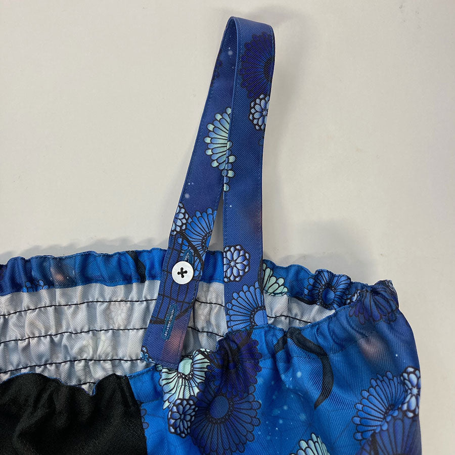 また、ウエストの切り替え部分にゴムと紐が入っており、紐を縛ることでもサイズ感を調整することができます。