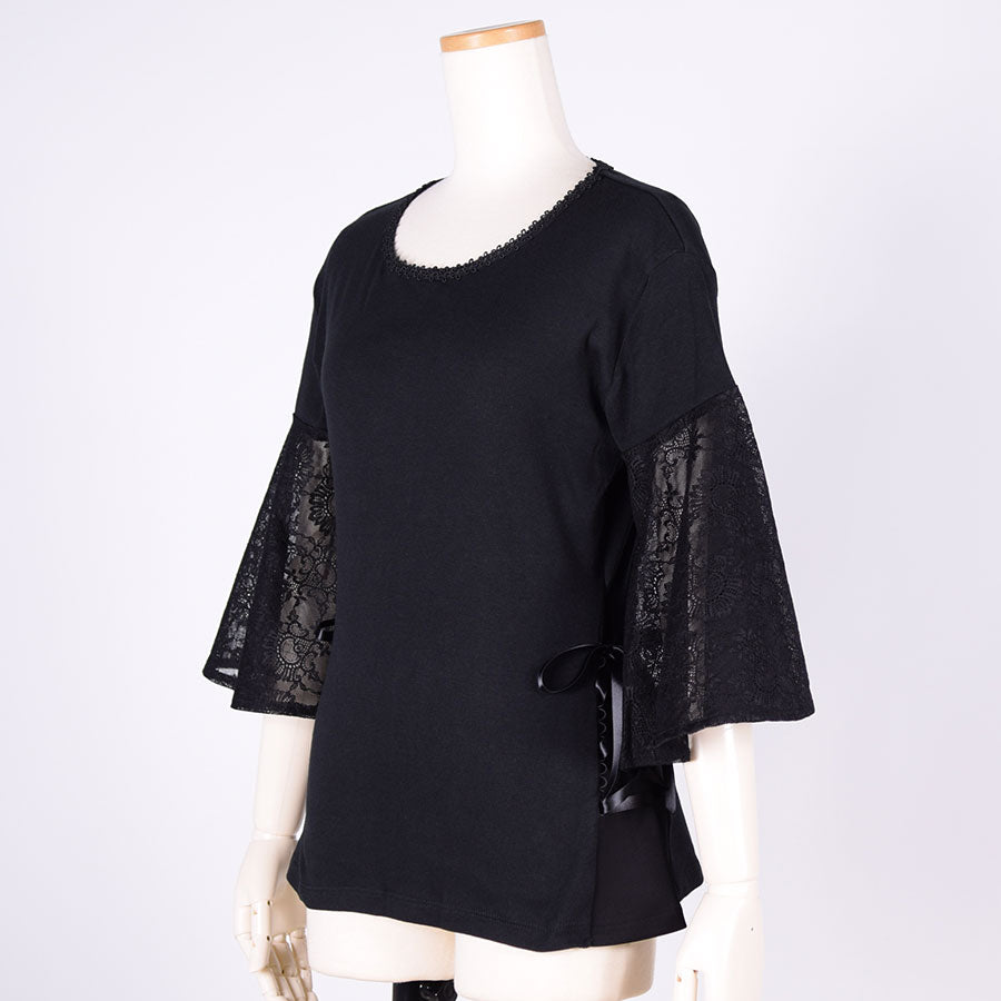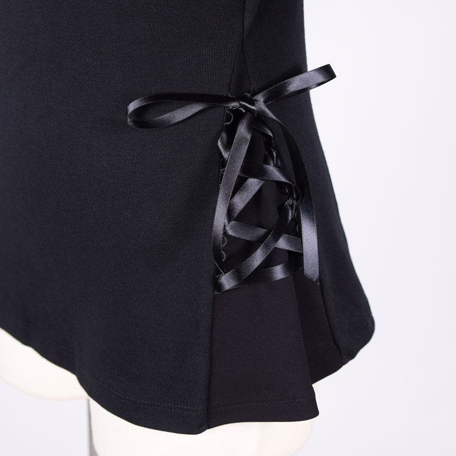 脇の切り替えと編み上げで、シルエットをお好みに絞ることができます。