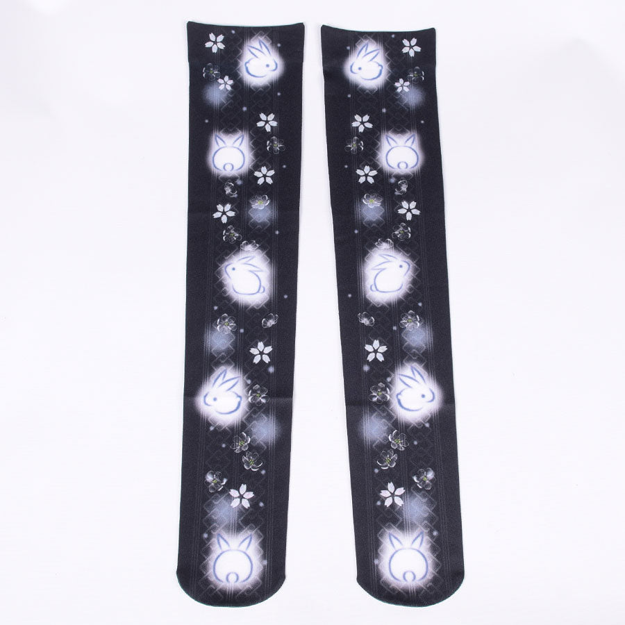 モリグチカ レイメイ柄オーバーニーソックス BK