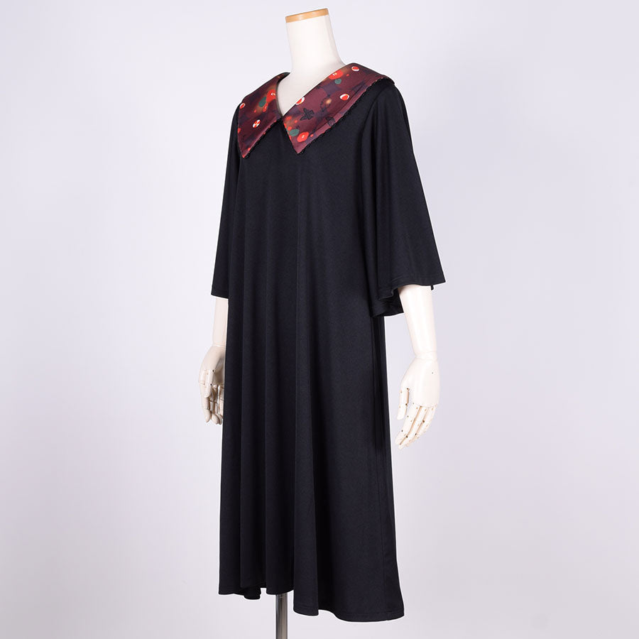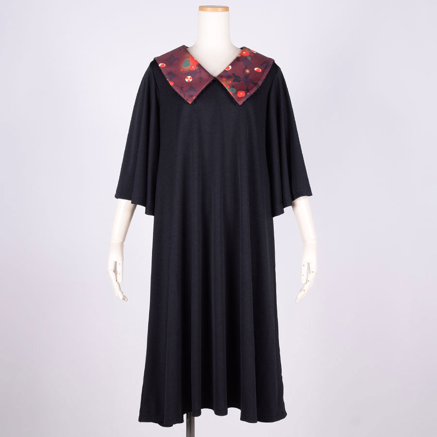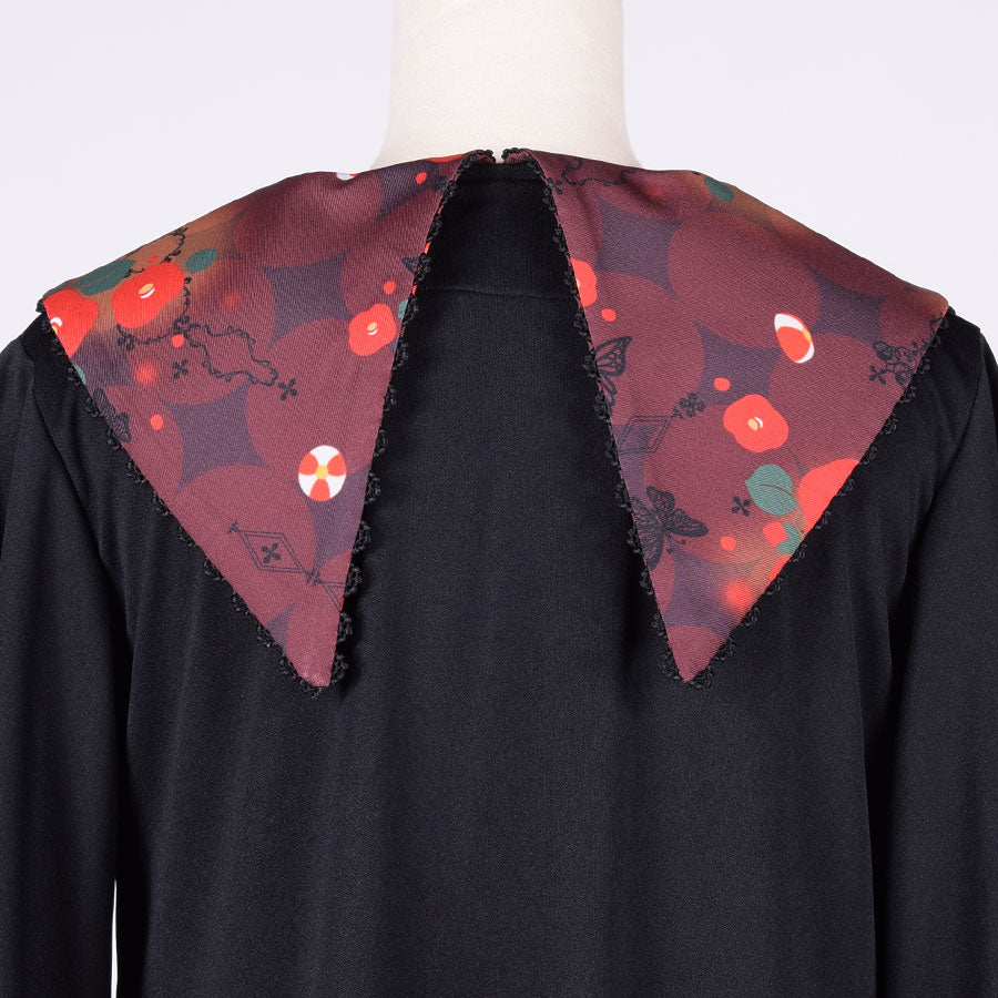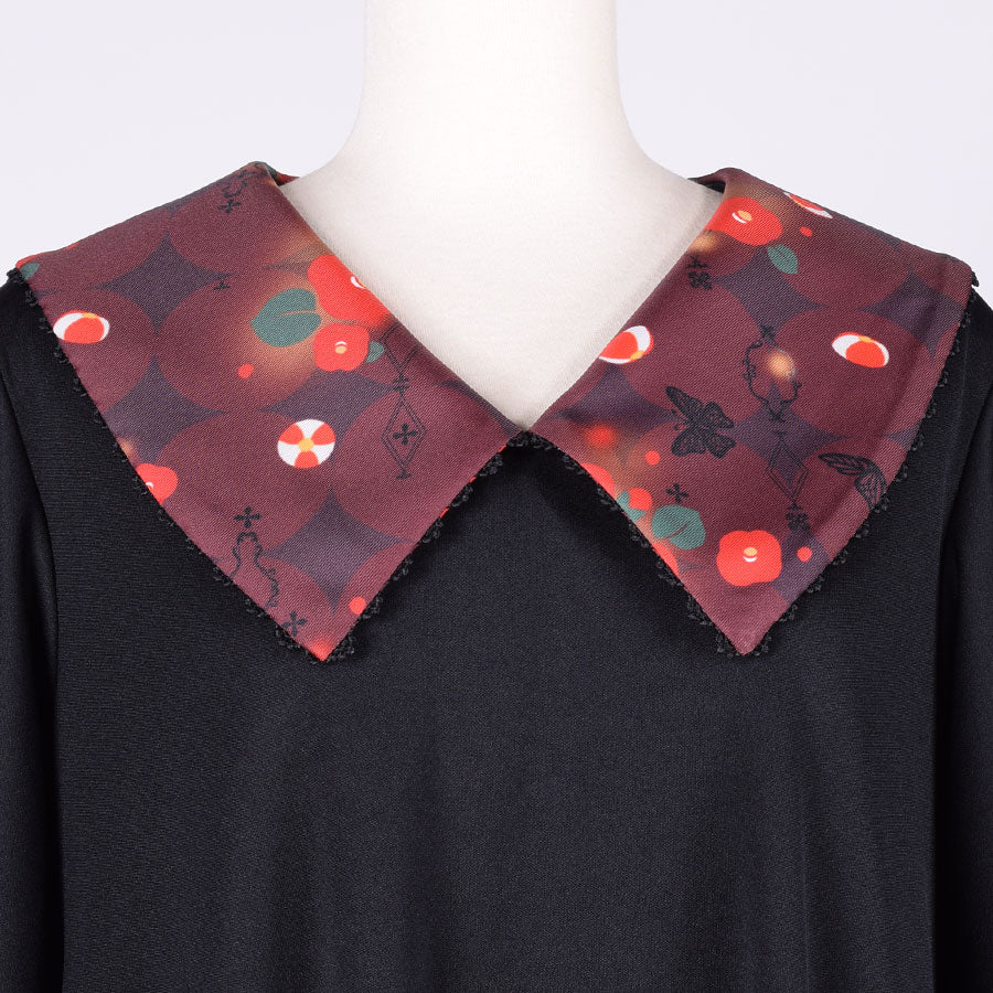 モリグチカ 夜幻椿柄ロマンチカ・カットワンピ BK-RD