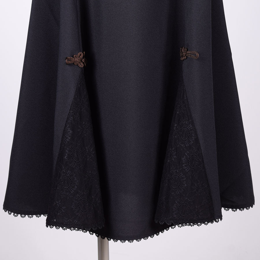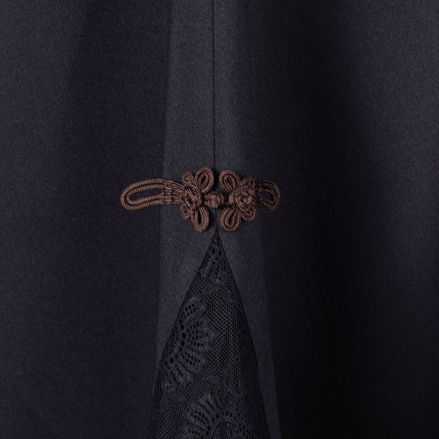 裾のレースの切り替えがポイントで、チャイナボタンのアクセントが異国情緒を漂わせます。