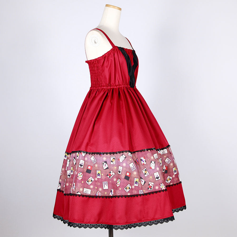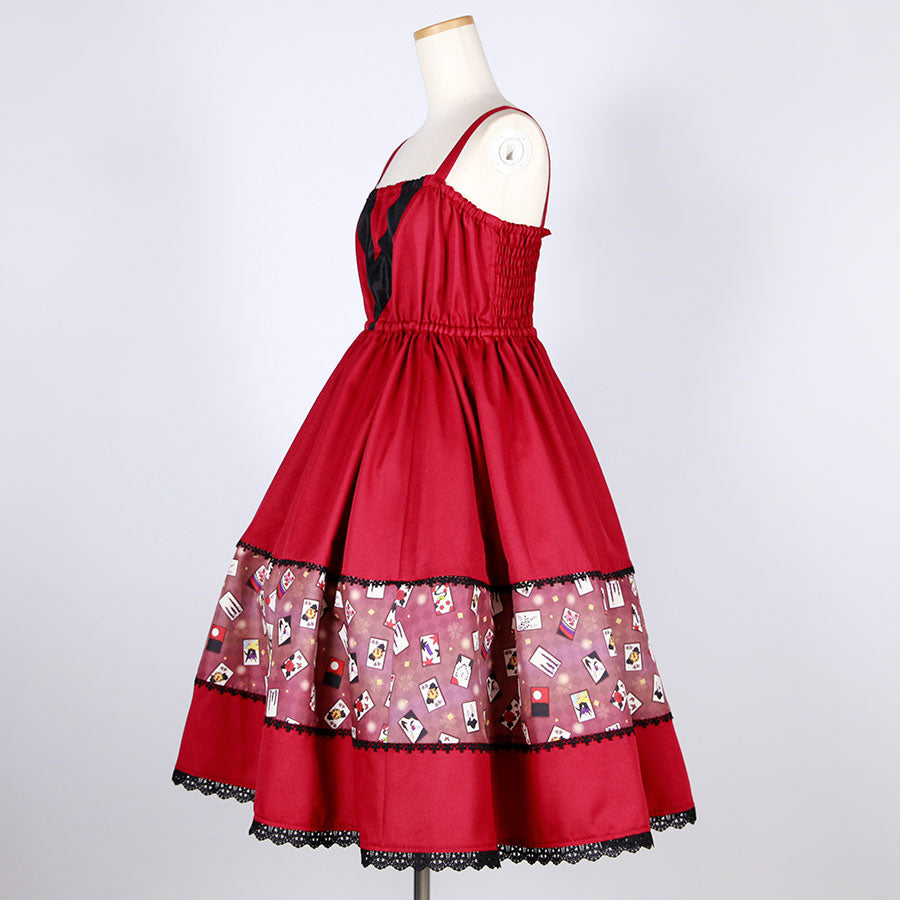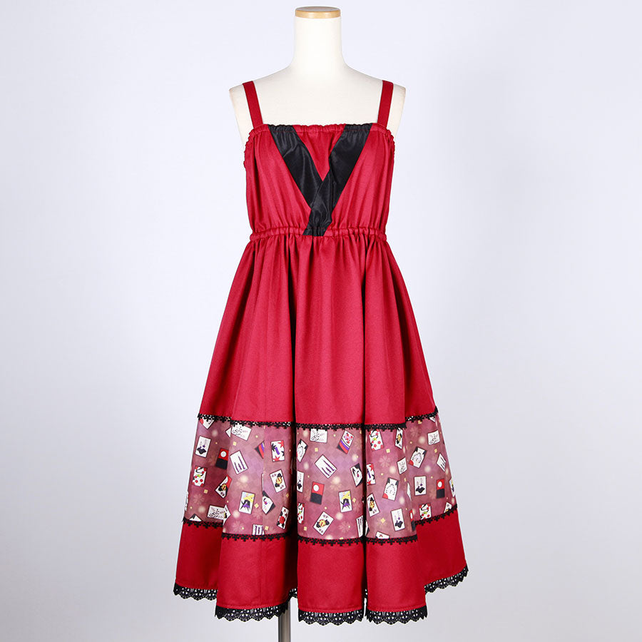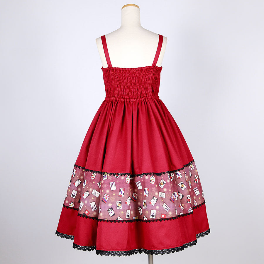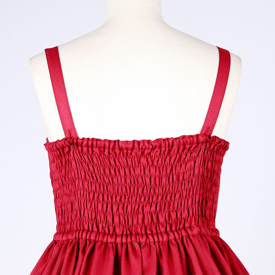 背面のシャーリングで着やすく、肩紐はボタンで長さ調節可能です。